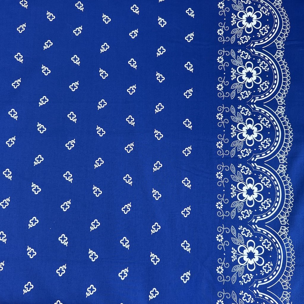 Bavlna lidový vzor - Bordura čtyřlístek pařížská modrá