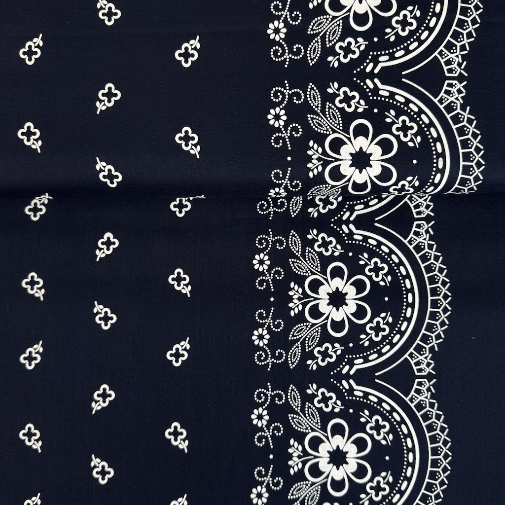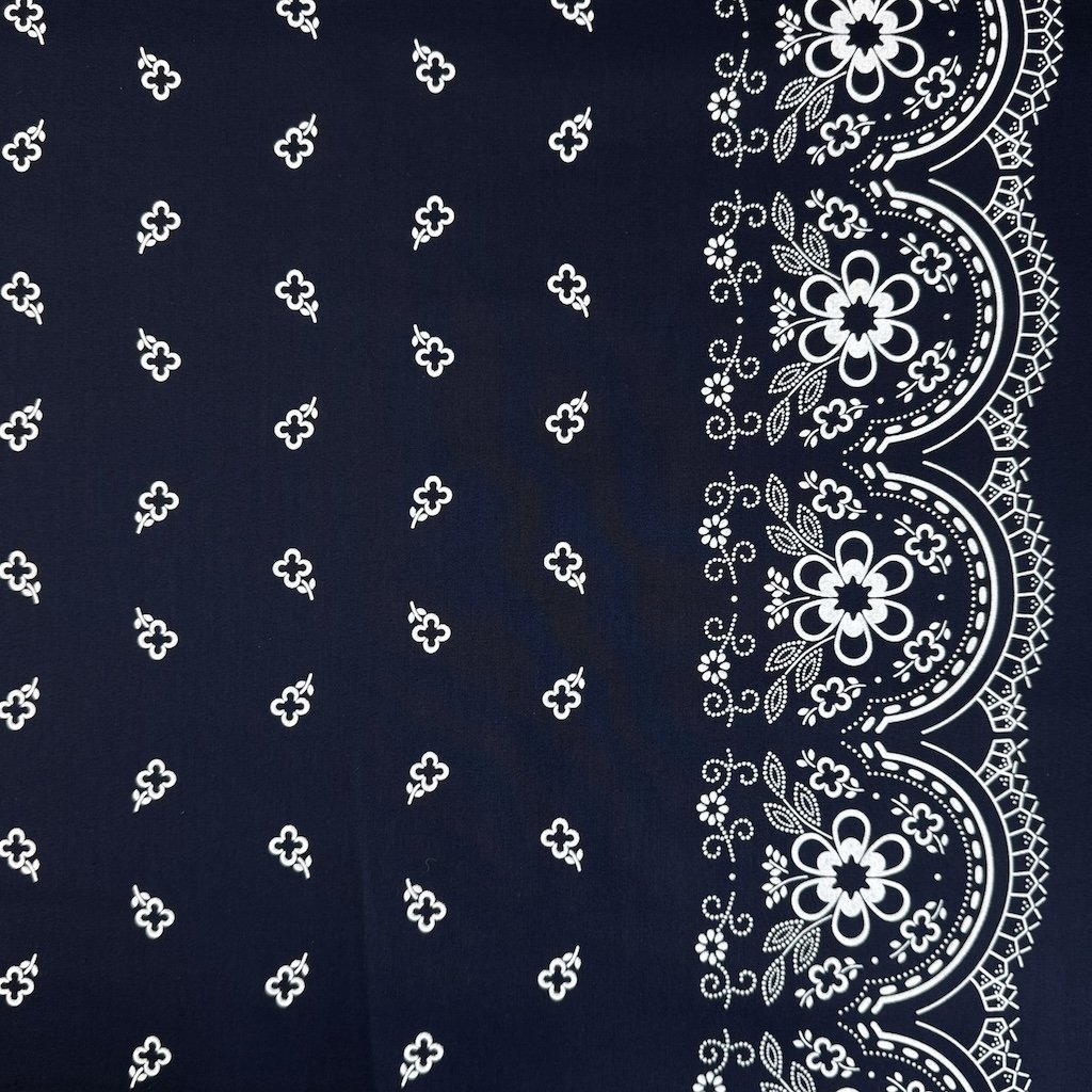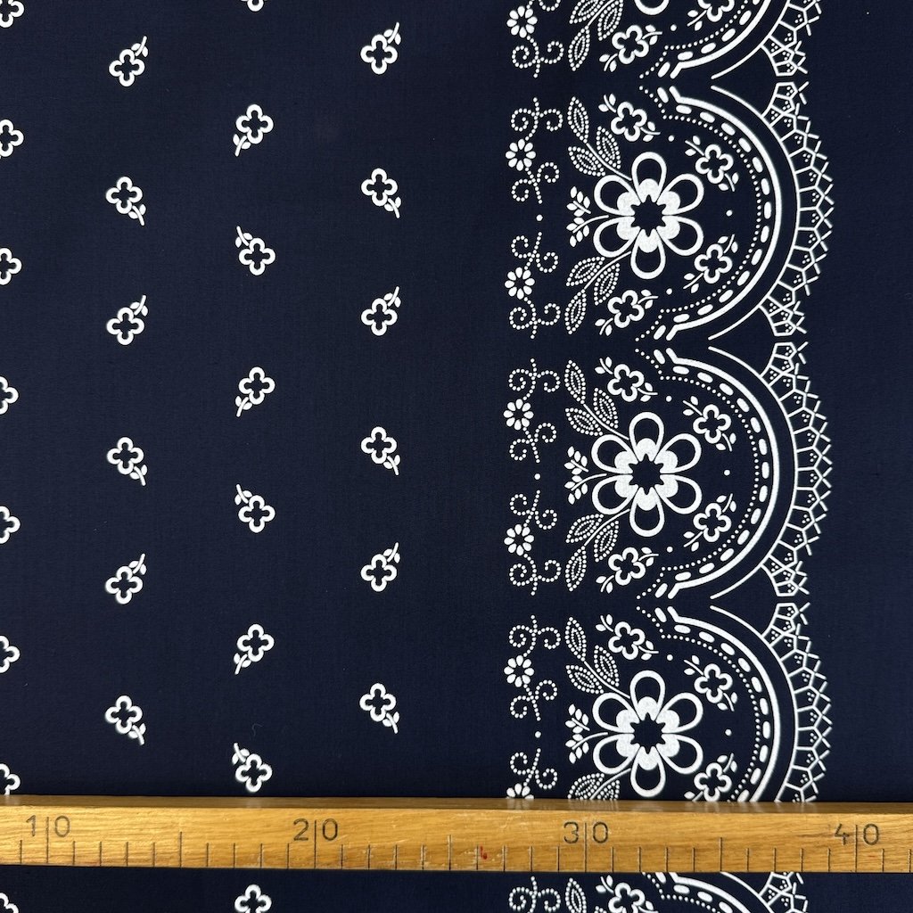 Bavlna lidový vzor - Bordura čtyřlístek tmavě modrá
