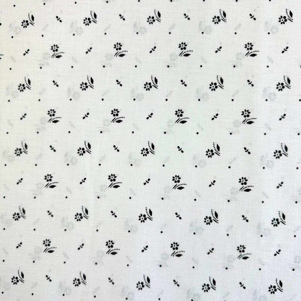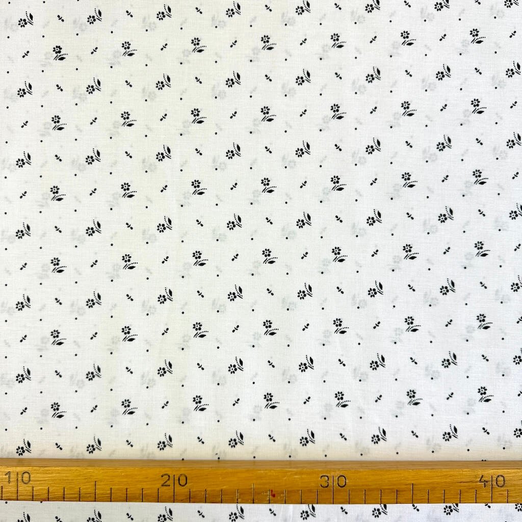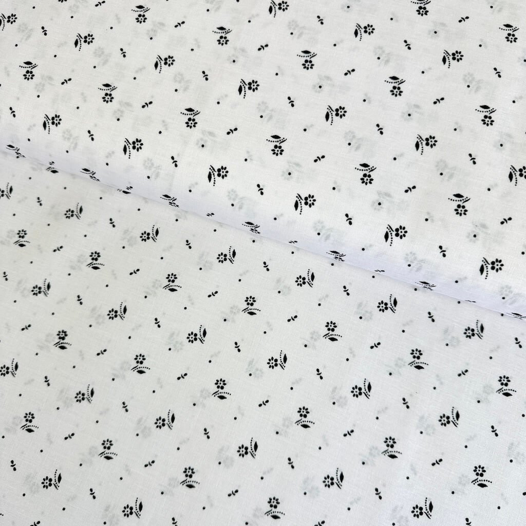 Bavlna lidový vzor - Květ mini černý na bílém