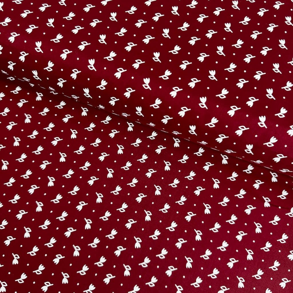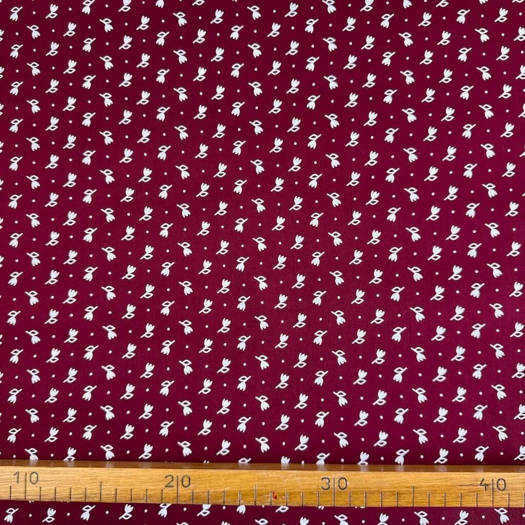 Bavlna lidový vzor - Tulipán bílý na bordovém