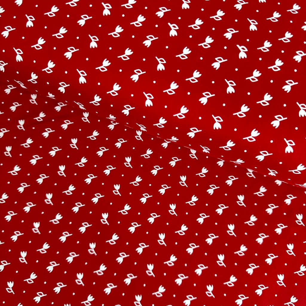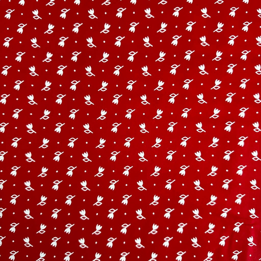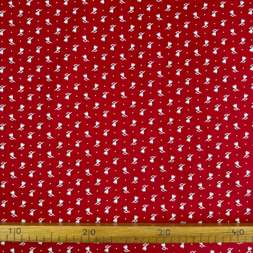 Bavlna lidový vzor - Tulipán bílý na červeném