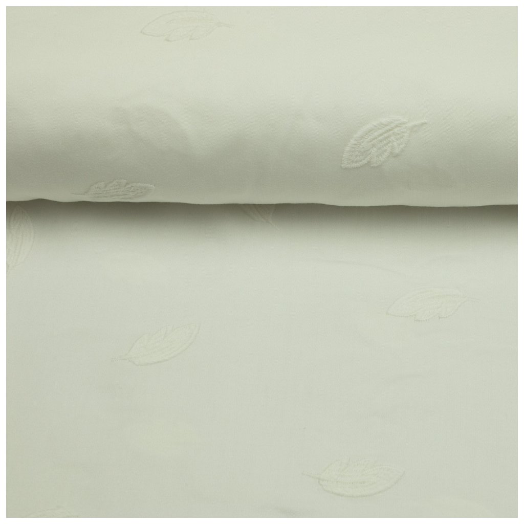 Bavlna popelín - Vyšívaný lístek - máslová