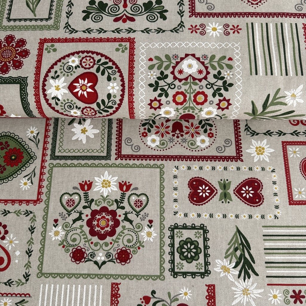 Kvalitní dekorační látka od evropského výrobce, se složením 80 % bavlna a 20 % polyester. Látka je ideální na polštáře, potahy, závěsy, ubrusy, prostírání či výrobu tašek.