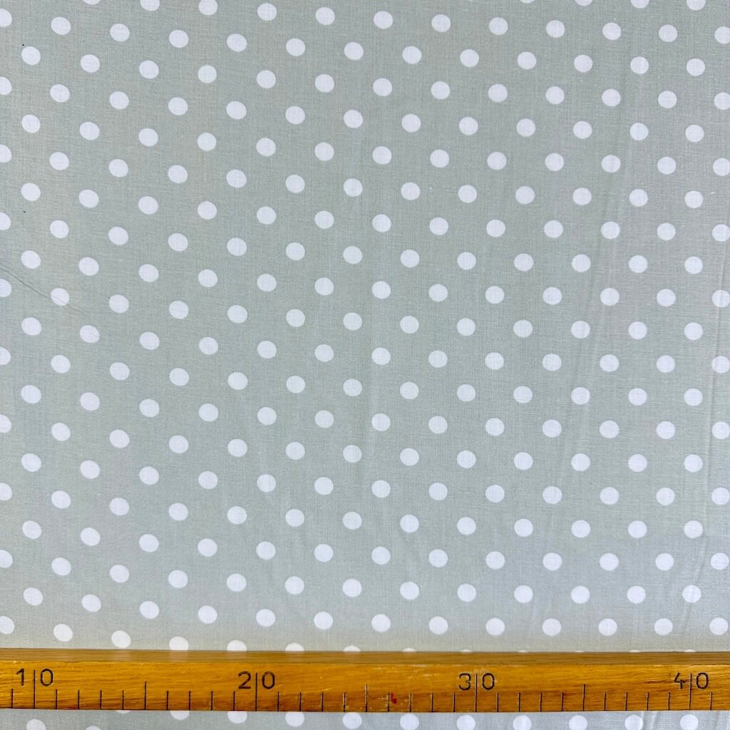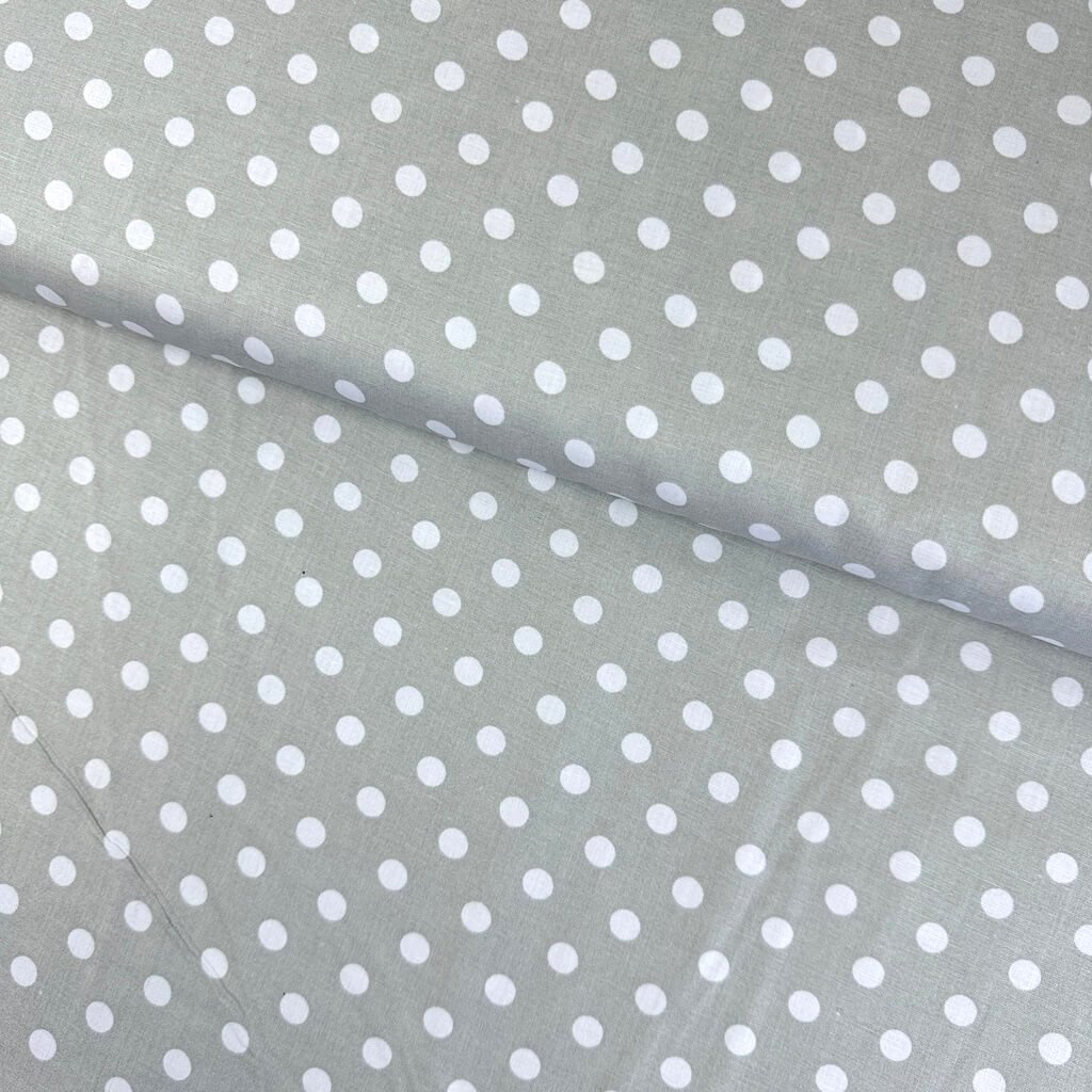 Bavlna vzorovaná - Bílé tečky (1 cm) na šedém