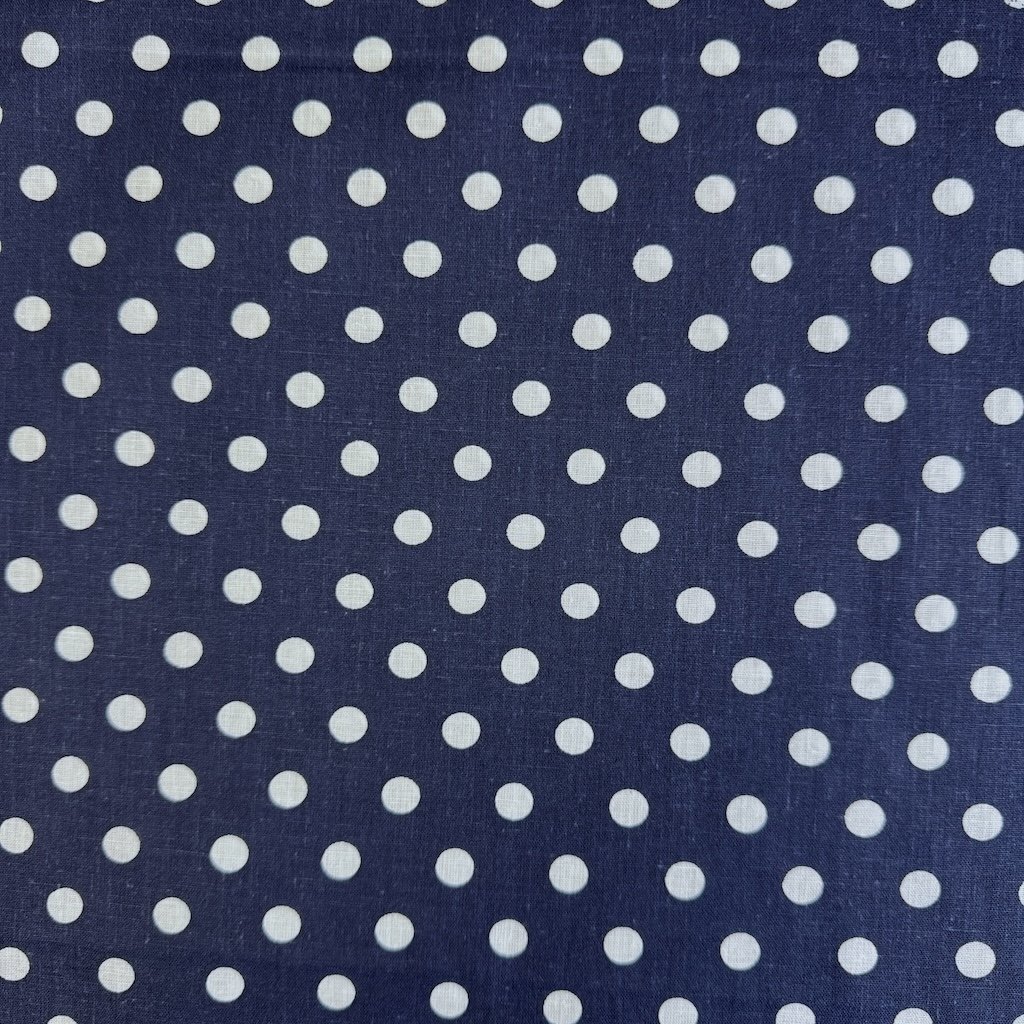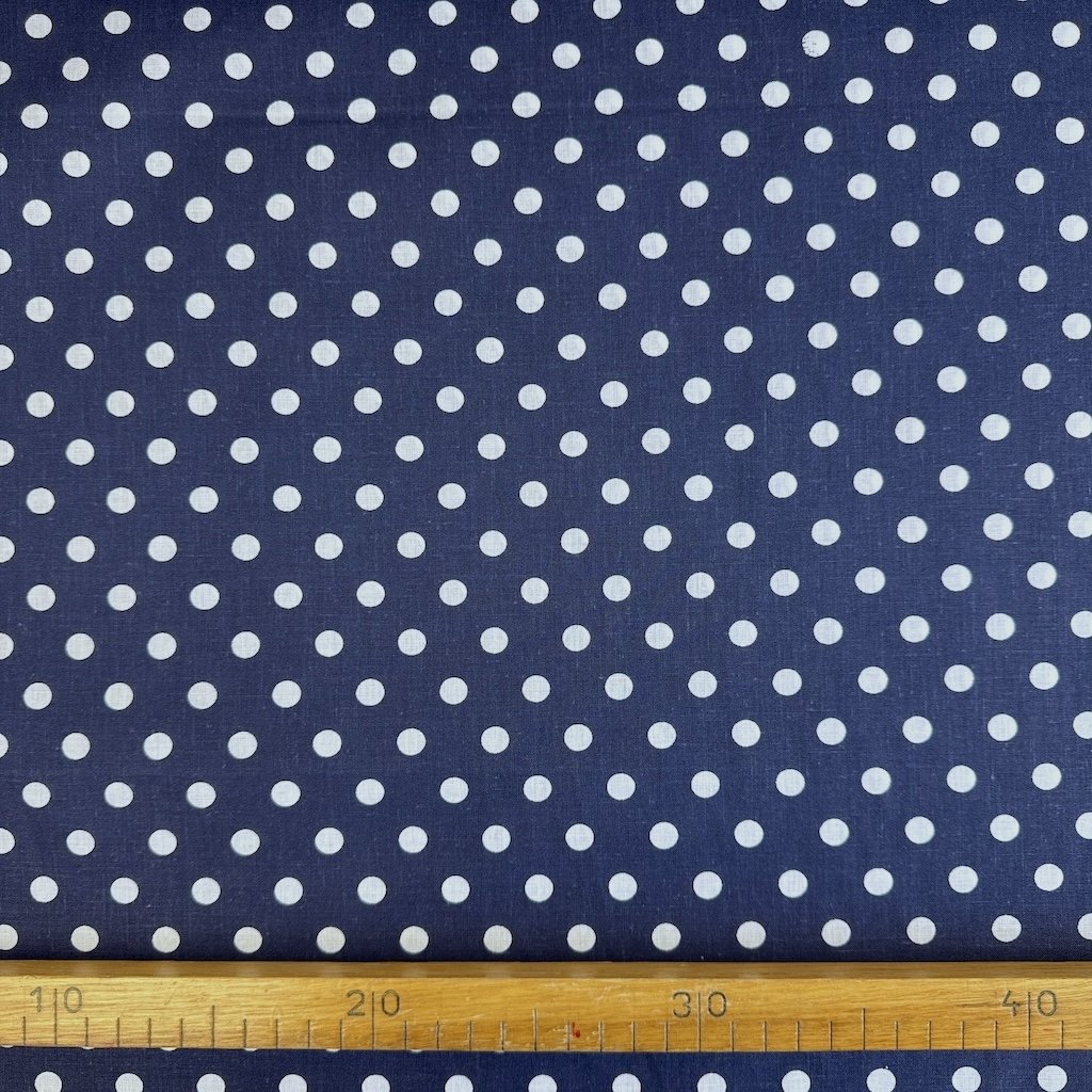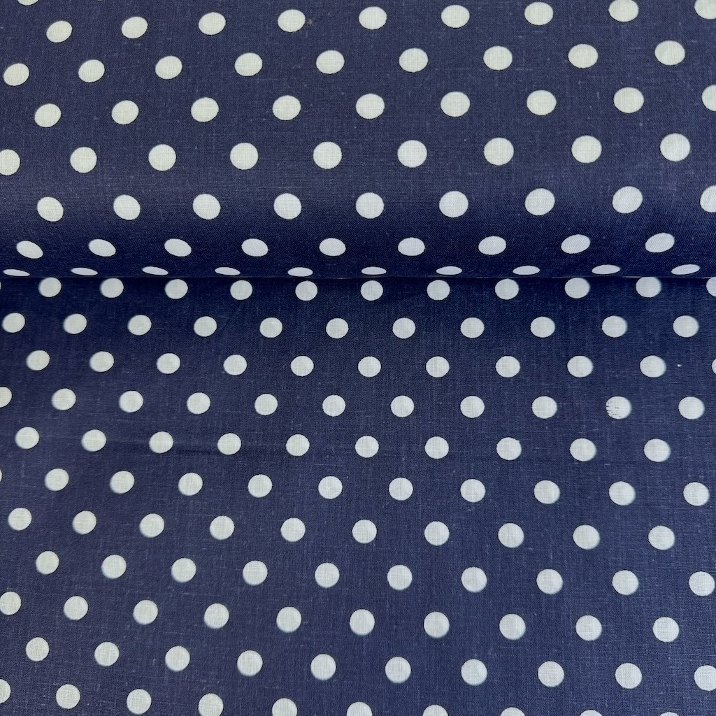 Bavlna vzorovaná - Bílé tečky (1cm) na tmavomodrém