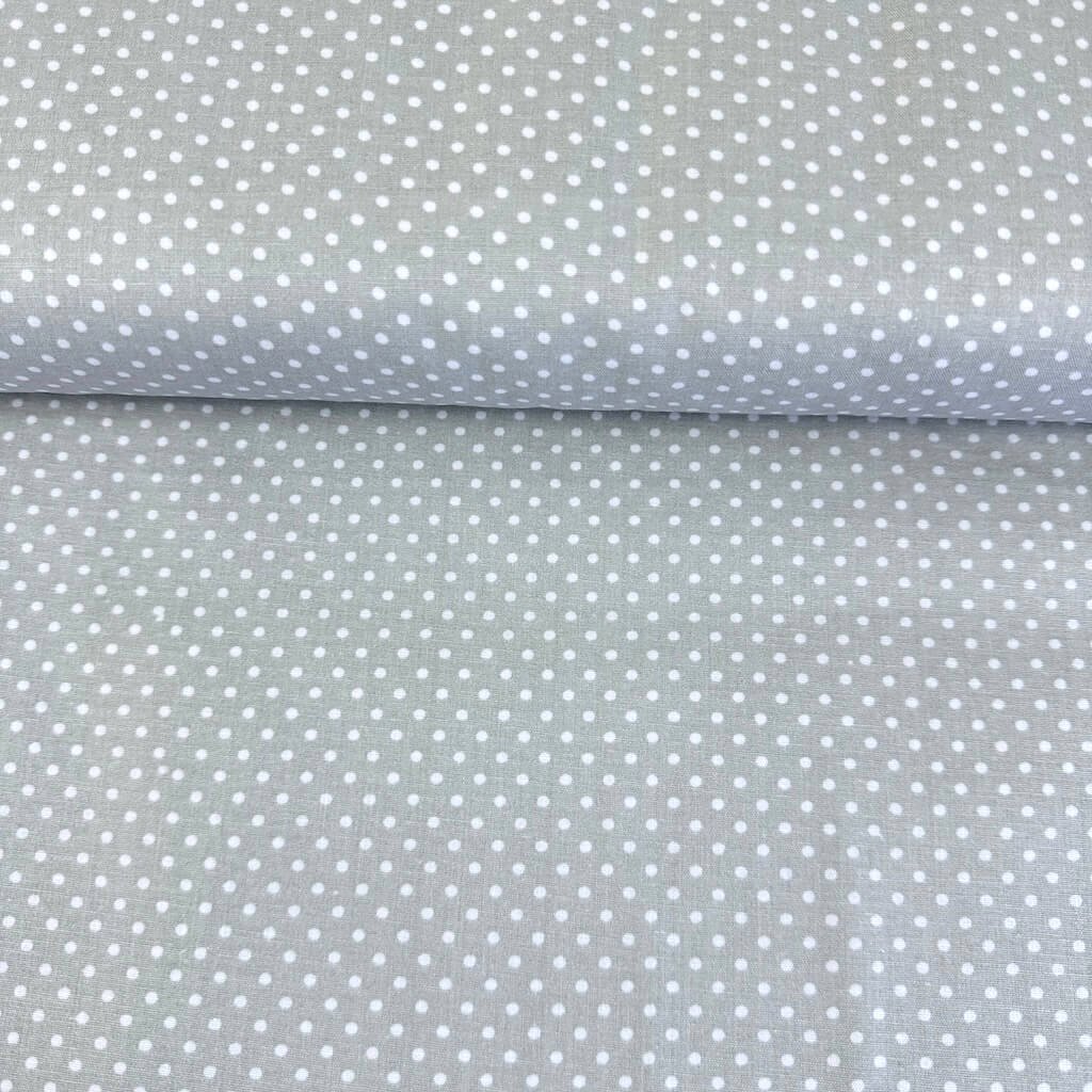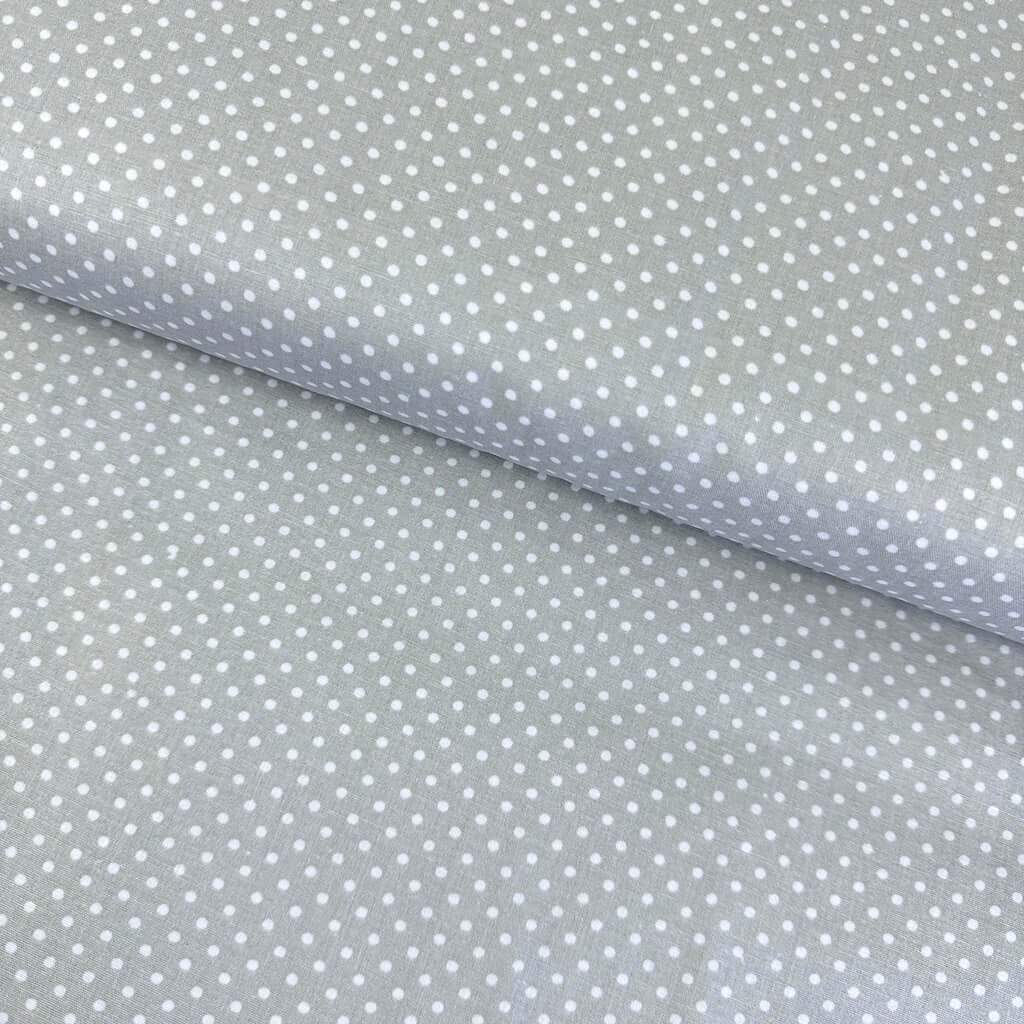 Bavlna vzorovaná - Bílé tečky (3 mm) na šedém