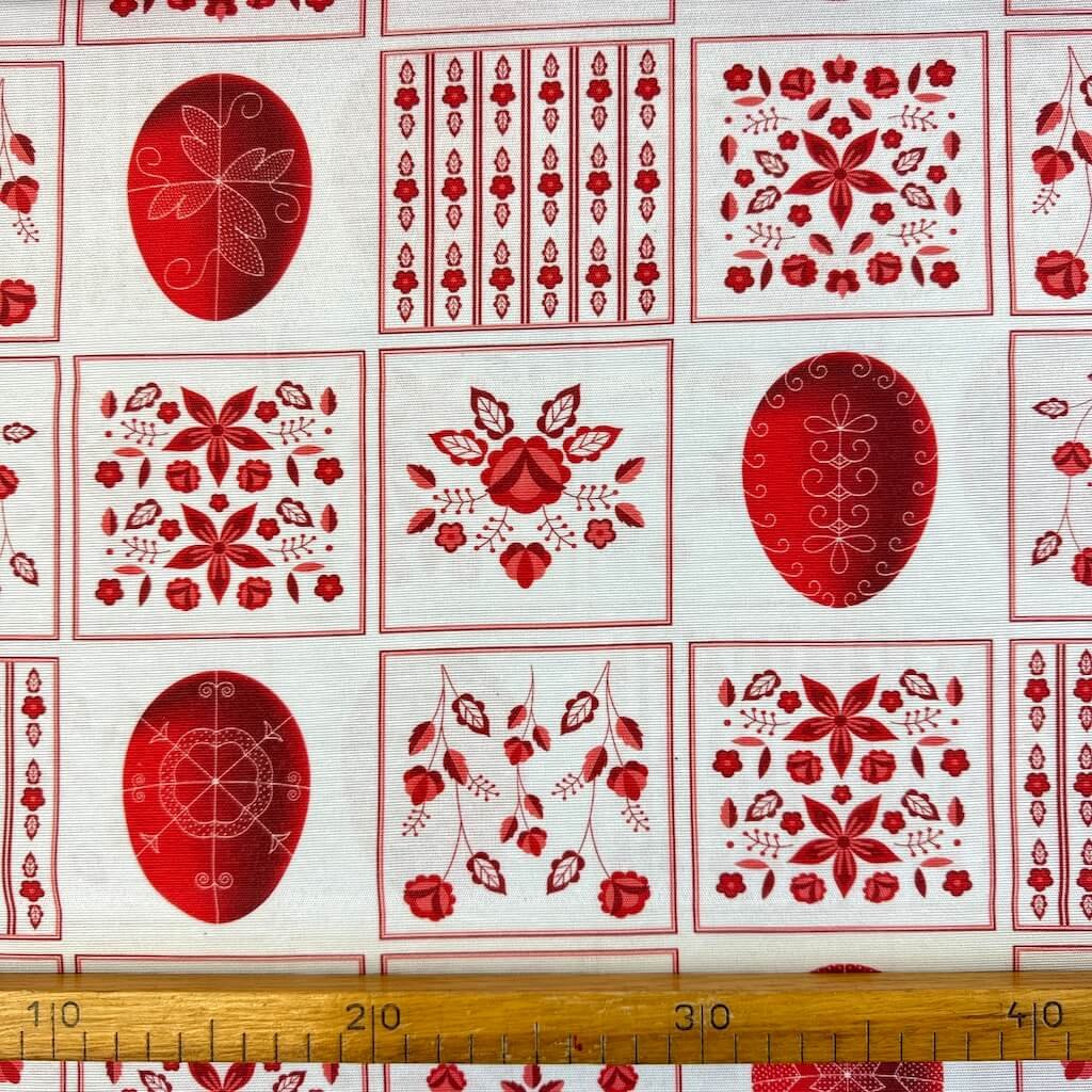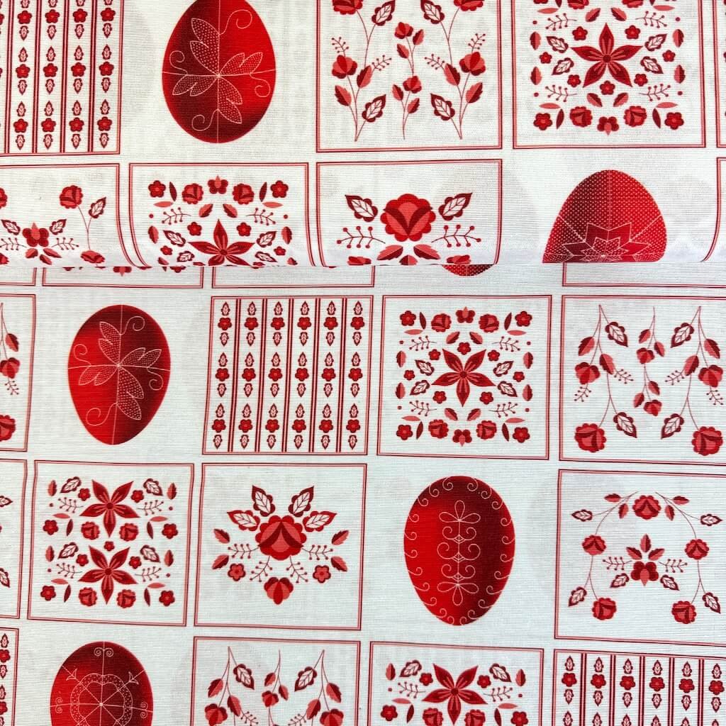 Bavlna vzorovaná - Patchwork vejce červené