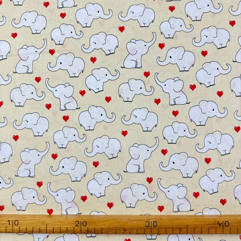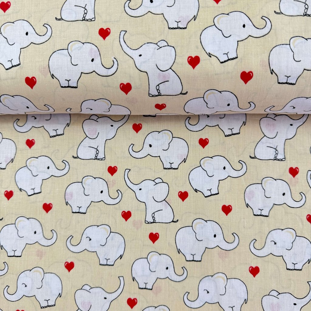 Bavlna vzorovaná - Sloníky na vanilkovém