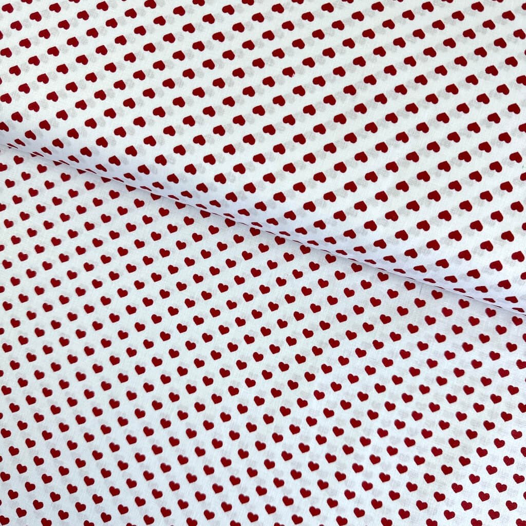 Bavlna vzorovaná - Srdíčka červené na bílém