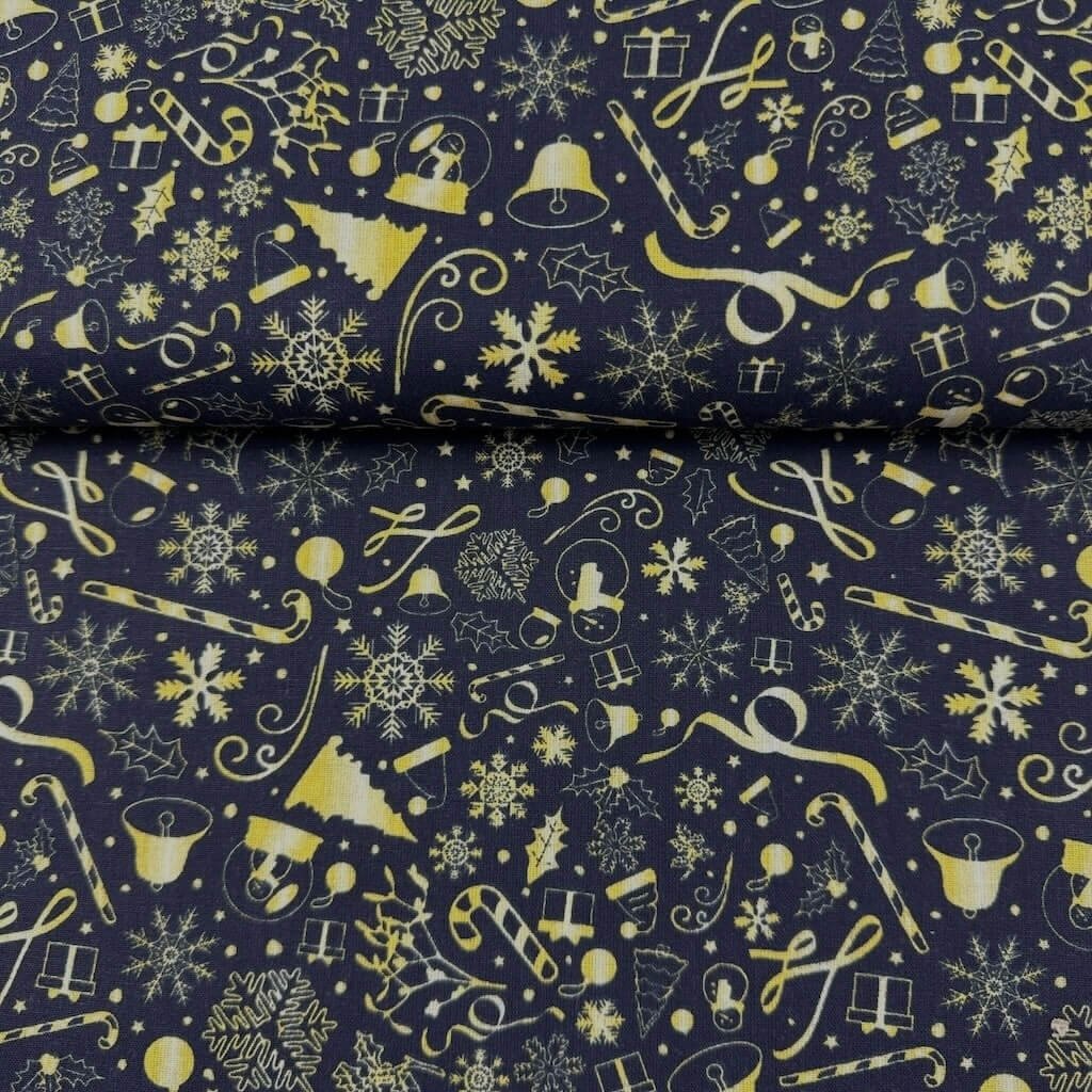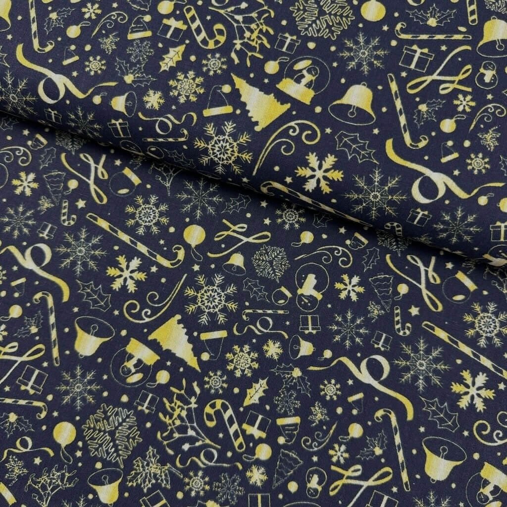 Bavlna vzorovaná - Vánoce modré