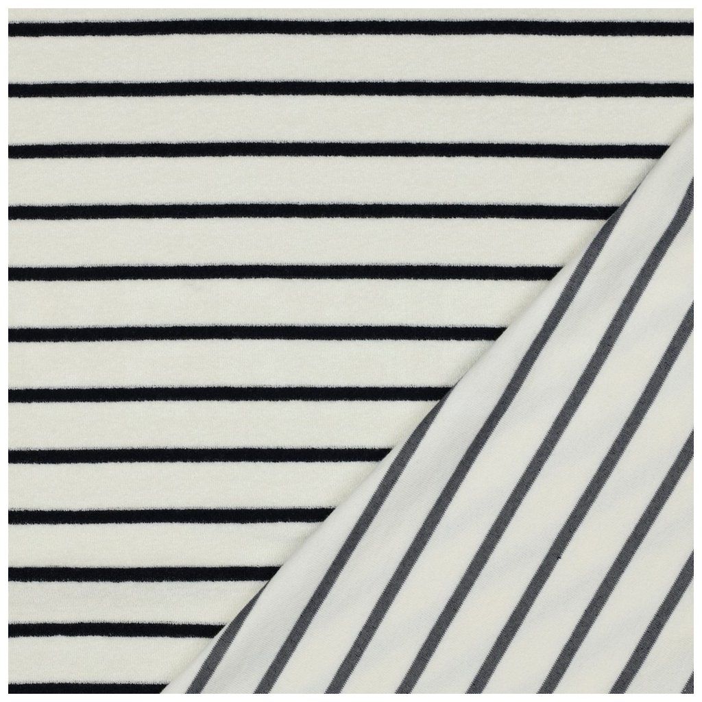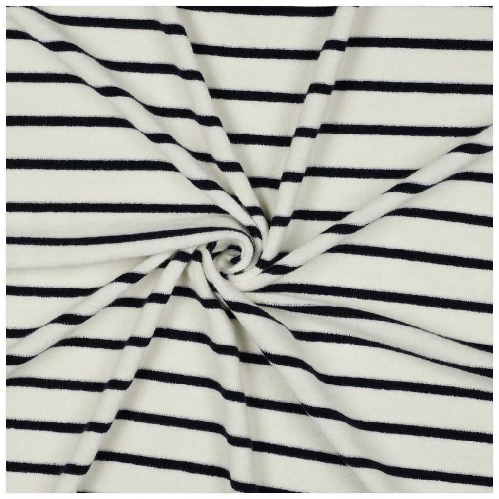 Bavlněné Froté – Ecru s tmavomodrými pruhy