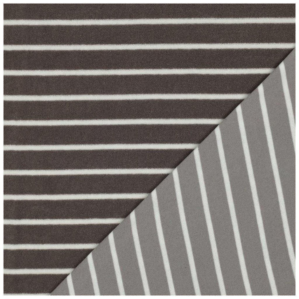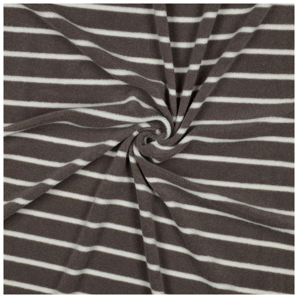 Bavlněné Froté – Hnědá taupe s Ecru pruhy