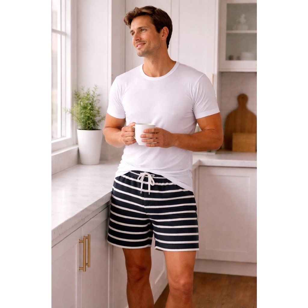 Kvalitní froté látka s tkanými pruhy (yarn dyed stripes) od ověřeného evropského výrobce spojuje komfort, funkčnost a moderní vzhled. Díky použití barvených přízí si pruhovaný design zachovává svou barevnou stálost i po opakovaném praní, což zaručuje dlouhou životnost výsledných výrobků. Froté je charakteristické svou smyčkovou strukturou, která zajišťuje vysokou savost a příjemnou měkkost na dotek. Tato látka je proto ideální volbou pro produkty, které přicházejí do kontaktu s vlhkostí a pokožkou – od koupelnového textilu až po pohodlné domácí oblečení.