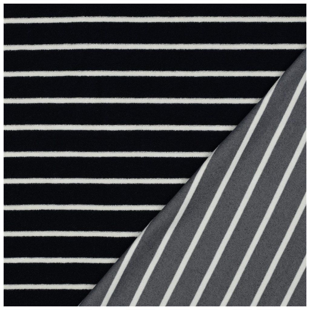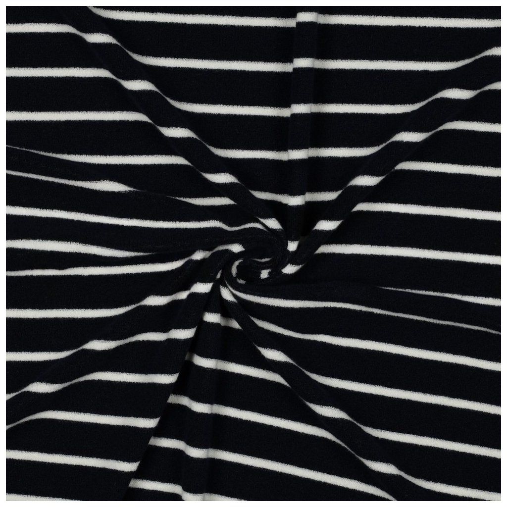 Bavlněné Froté – Modrá tmavá s Ecru pruhy