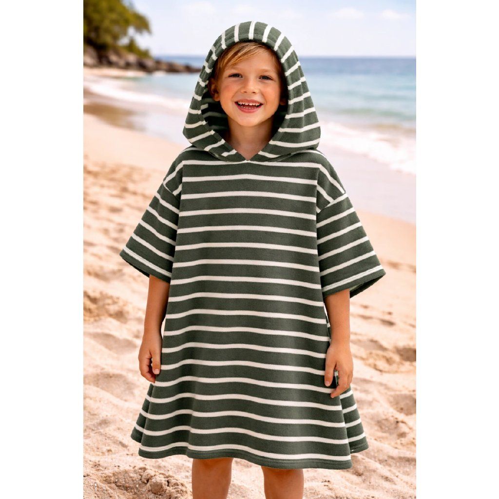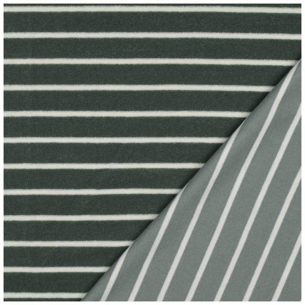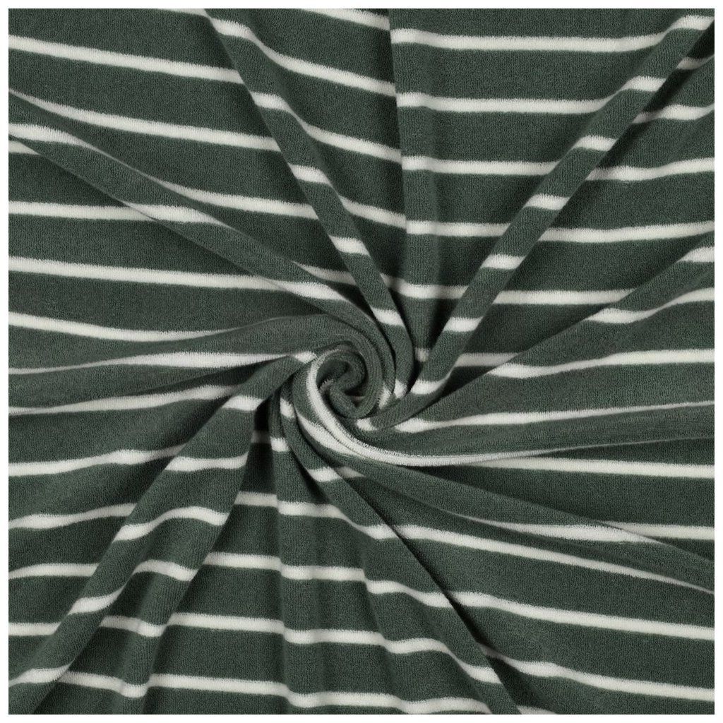 Bavlněné Froté – Zelená s Ecru pruhy