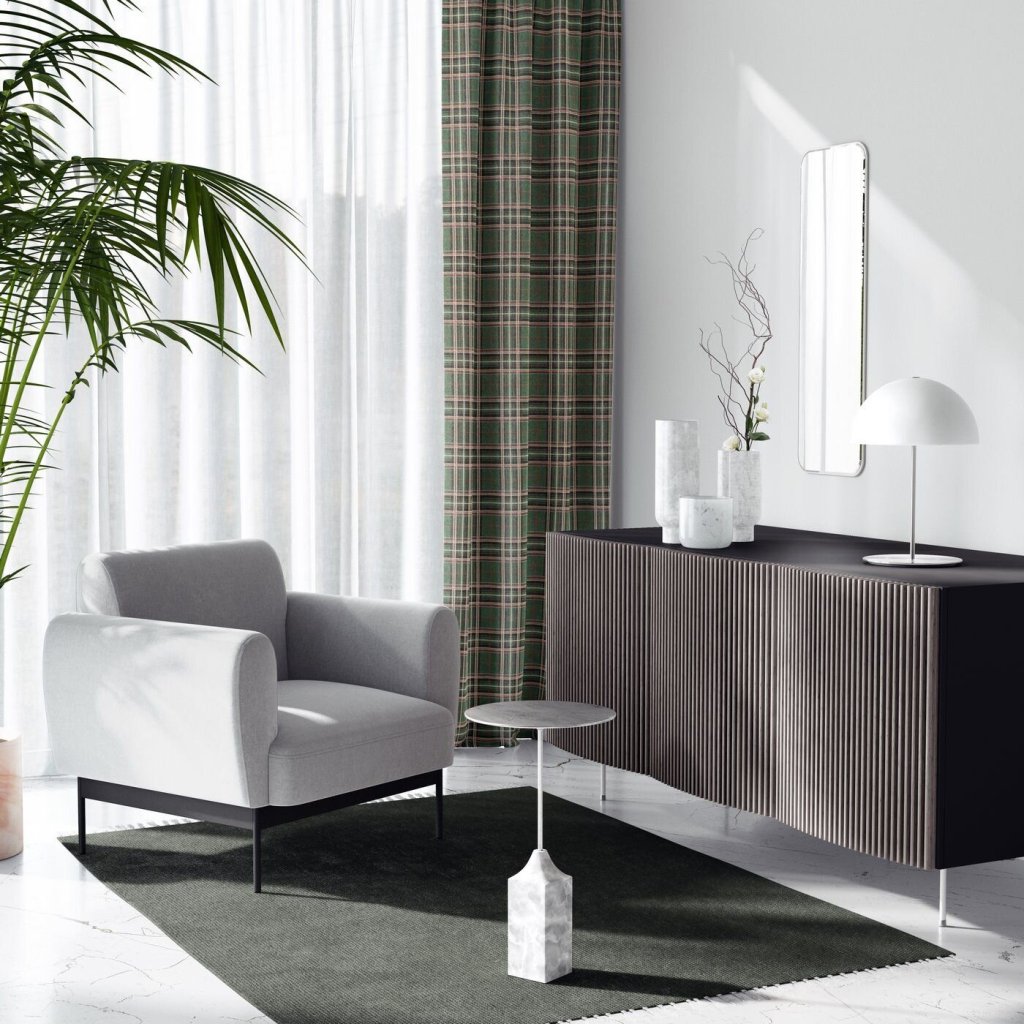 Elegantná žakárová látka zdobená tartanovým vzorom uspokojí vkus milovníkov tradičných vzorov i tých, ktorí hľadajú moderné doplnky do interiéru. Nadčasový károvaný vzor sa hodí do klasického aj moderného interiéru. Žakárový, hrubší a husto tkaný materiál chráni interiér cez deň pred slnkom a večer pred vonkajšími pohľadmi a vytvára vo vnútri príjemnú atmosféru. Vďaka vysokej kvalite tkanín a vynikajúcim funkčným hodnotám uspokoja závesy vkus aj náročných zákazníkov. K závesom z tejto látkysa budú skvele hodiť jednoduché jemné záclony ale skvele vyzerajú aj ako jediná okenná dekorácia. Dokonale dopĺňajú jesenno-zimný interiérový dizajn.