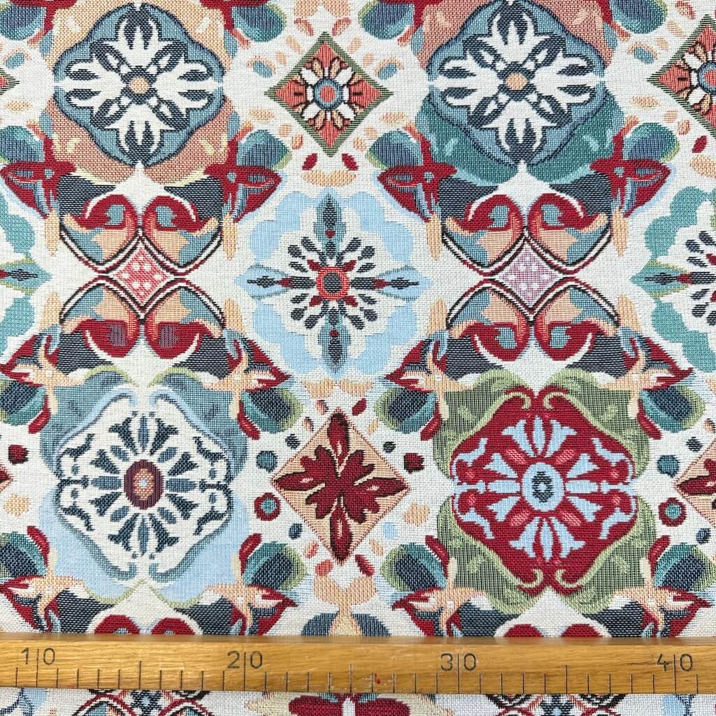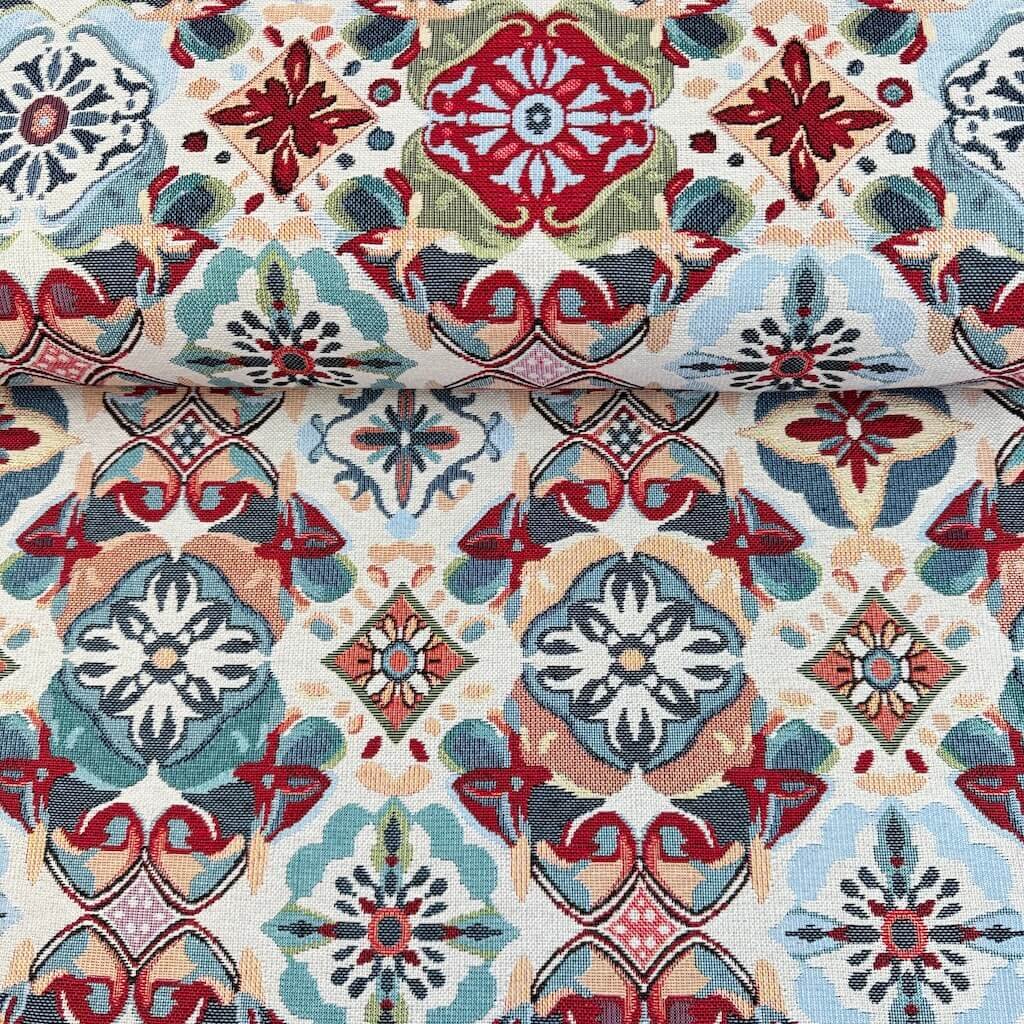 Gobelín Premium je kvalitní látka od renomovaného španělského výrobce, známá svým jedinečným stylem, vysokou kvalitou a dlouhou životností. Tato textilie se vyznačuje hustou vazbou a charakteristickými vzorovanými designy, které přidávají nádech luxusu a elegance každému projektu.Gobelín je výjimečně pevná a odolná látka vhodná pro intenzivní používání.Využití látky je ideální pro interiérové dekorace: čalounění nábytku, závěsy, ubrusy nebo dekorativní polštáře i pro kreativní projekty: tvorba tašek, obalů nebo uměleckých děl, kde vynikne jedinečná textura látky.