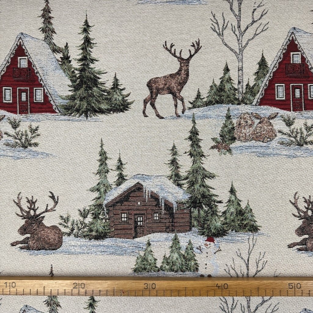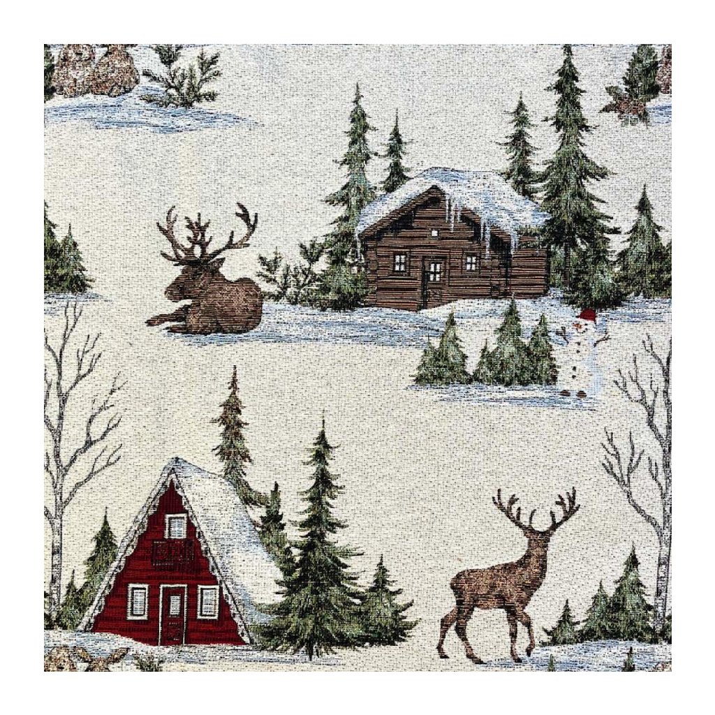 Gobelín Vánoce – Lurex zlatý – Zimní krajina