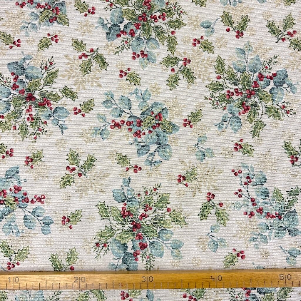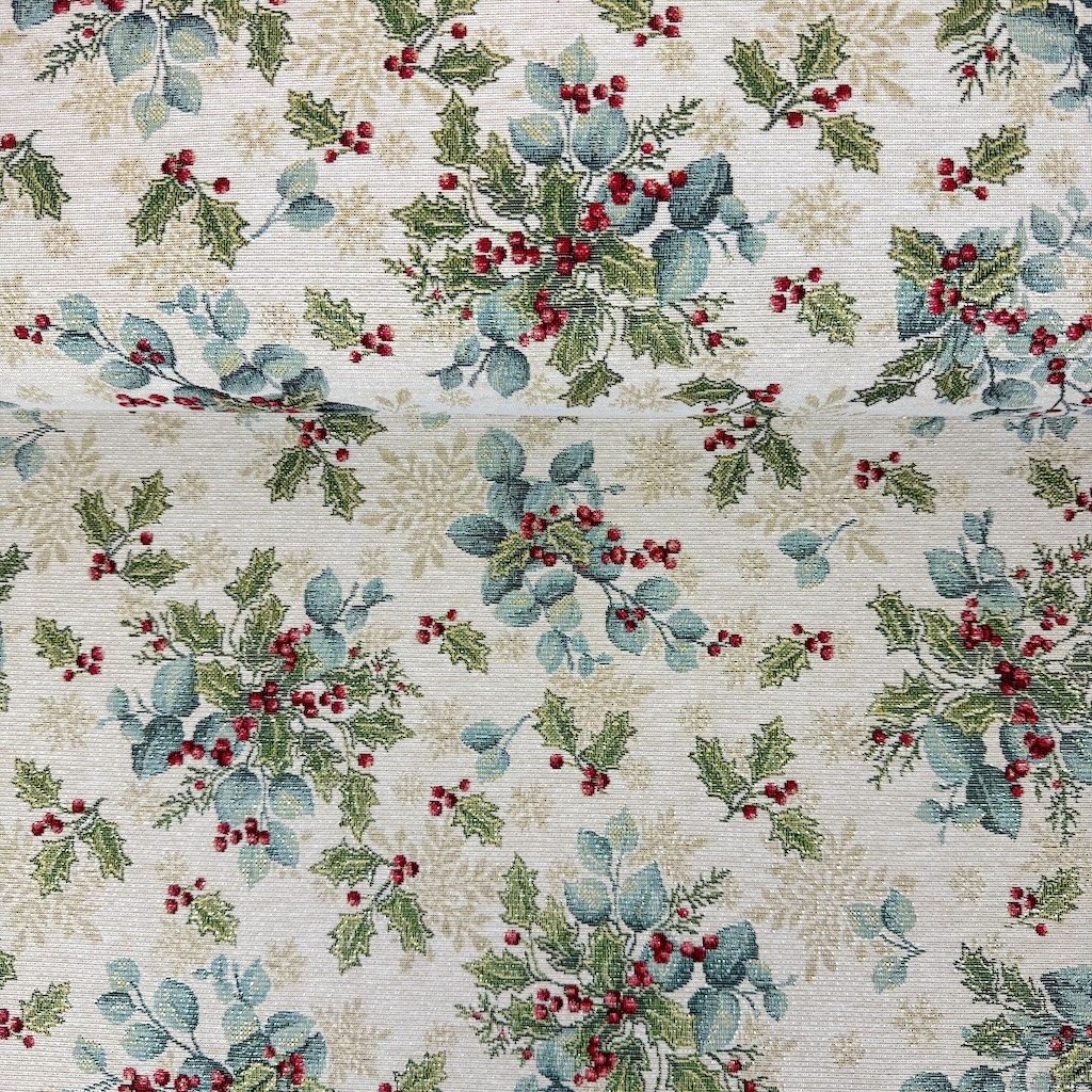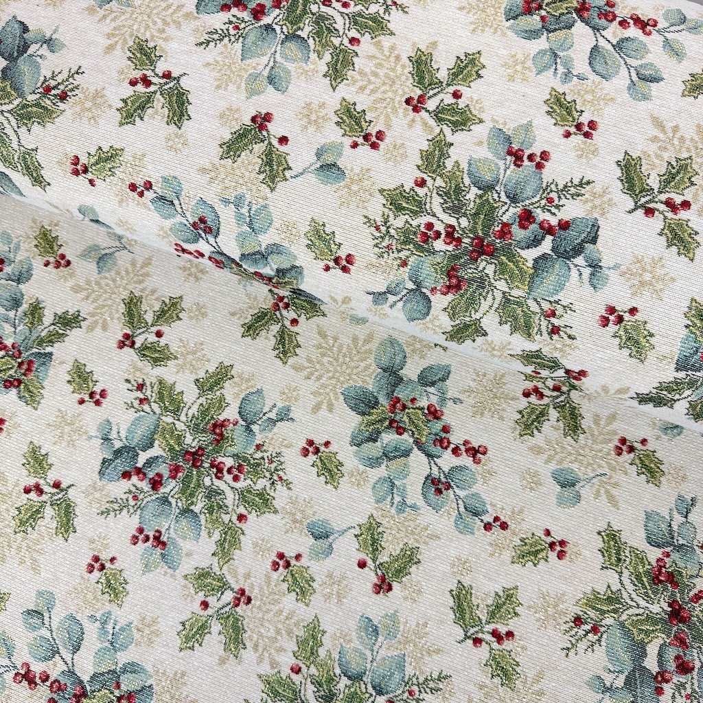 Gobelín Vánoce - Lurex stříbrný - Vánoční eukalyptus