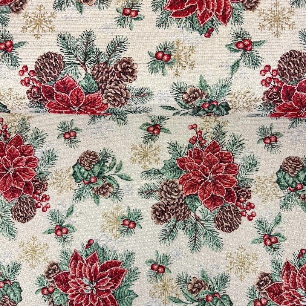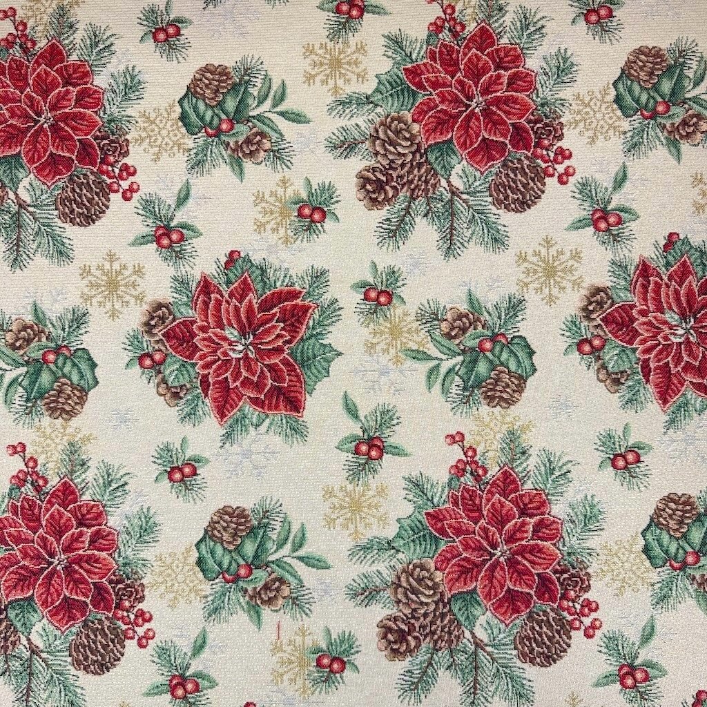 Gobelín Vánoce - Lurex zlatý - Vánoční růže