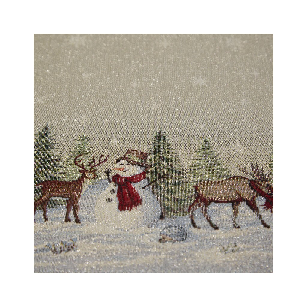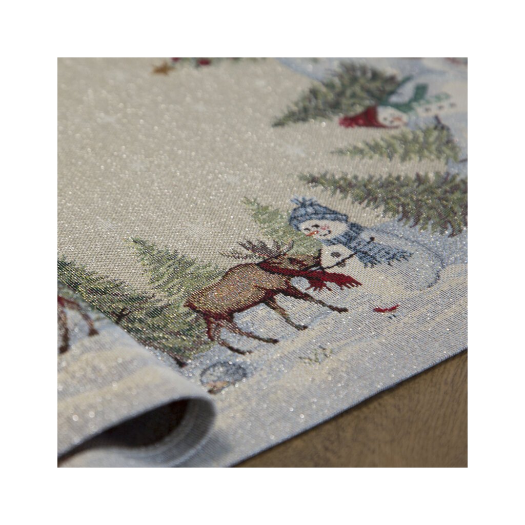 Ubrus z gobelínové tkaniny s vánočním vzorem.