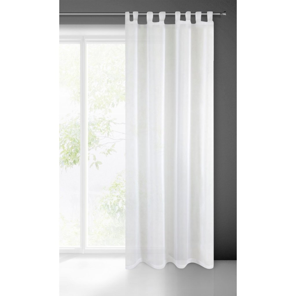 Chcete dodat svému interiéru lehkost a lesk? Sněhově bílý závěs TIA z jemného a lehkého voálu opticky změní a osvěží váš interiér. Díky svému univerzálnímu charakteru se hodí jak do moderního, tak do tradičního stylu. Záclonu můžete snadno naaranžovat podle světla okna; k tomu slouží praktické šle, díky nimž je látka uspořádána do symetrických vln a změna dekorace zabere doslova pár okamžiků. Doporučujeme!