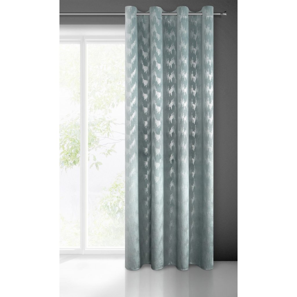 Sametový závěs se stříbrným potiskem šířka: 140 cm, délka: 250 cm, barva: tyrkysová, hmotnost: 200 GSM, složení: 100 % polyesterDoplňkové parametry