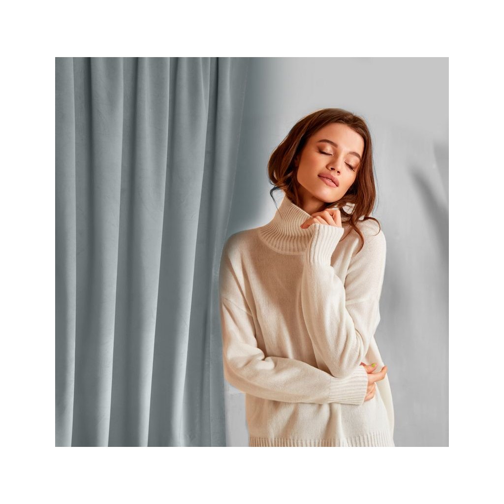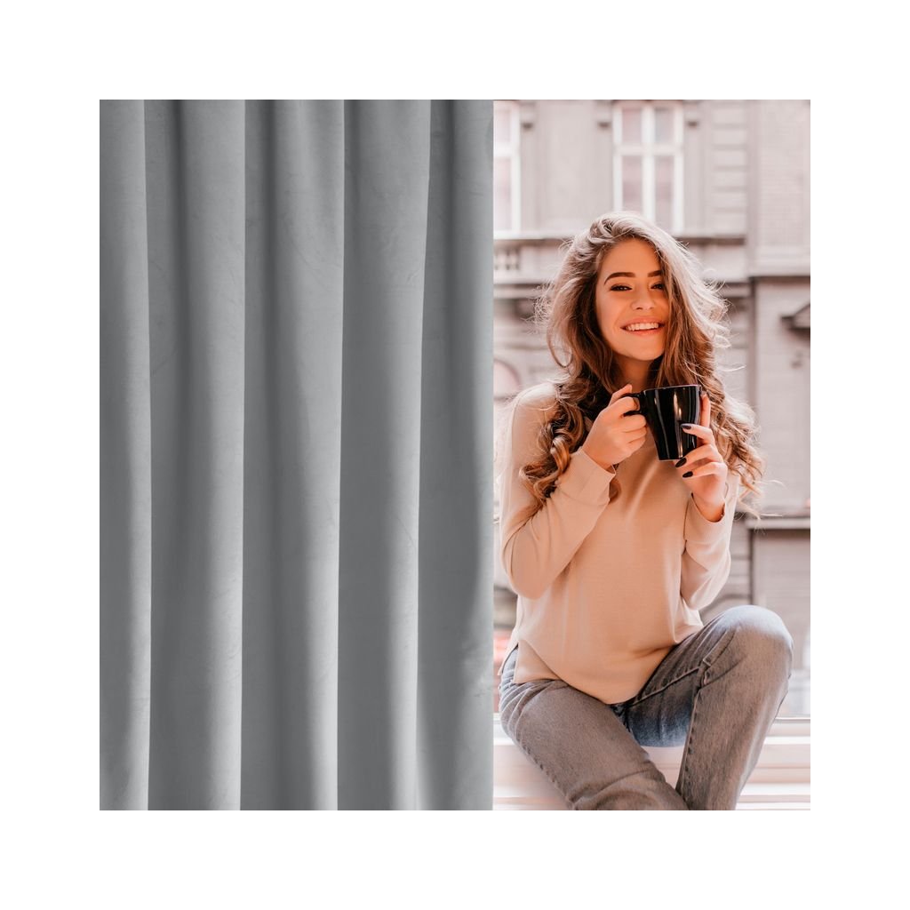 Závěs ROSA ze série DESIGN 91 z měkké a nadýchané sametové tkaniny s jemným leskem elegantně ozvláštní módní interiér. Decentní šedá barva skvěle doplní aranžmá a opticky zateplí interiér. Silnější, nadýchaná a dobře potažená tkanina s hustou vazbou dobře chrání okno, zajišťuje soukromí a příjemnou atmosféru v interiéru.