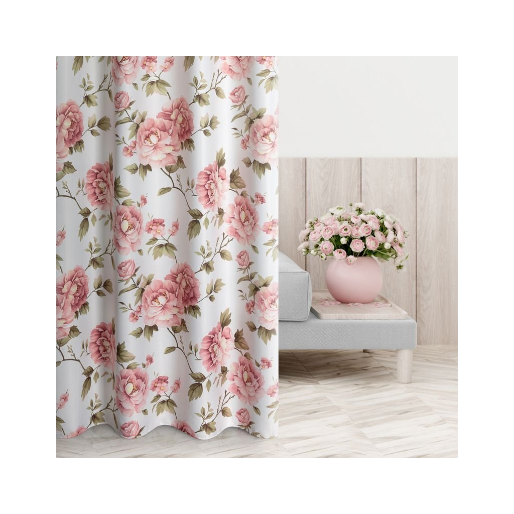 Hledáte okenní dekoraci do novoromantického interiéru? Motiv rozkvetlých pivoněk zdobí okno TESS, které je vyrobeno ze silnějšího a jemnějšího zatemňovacího materiálu, který je saténový na dotek, poskytuje optimální ochranu před slunečním zářením a vytváří uvnitř příjemnou atmosféru.