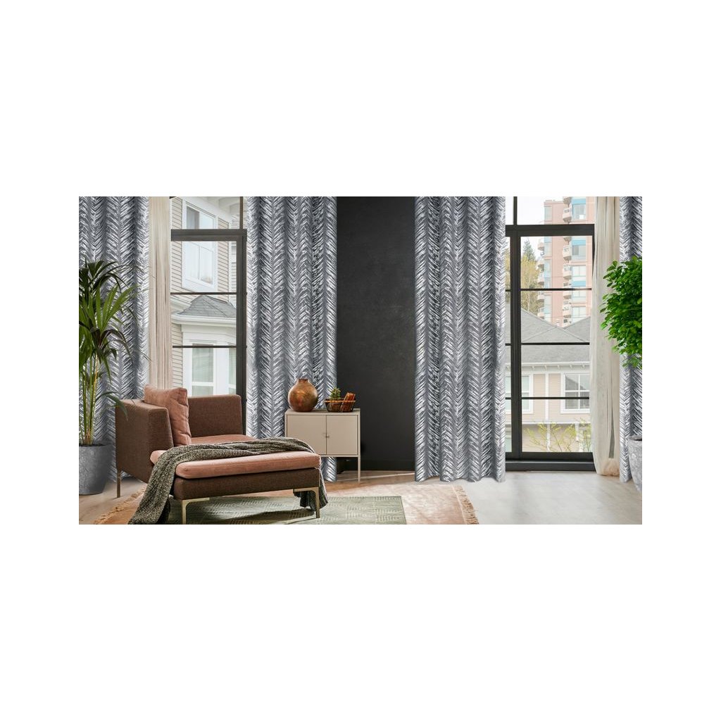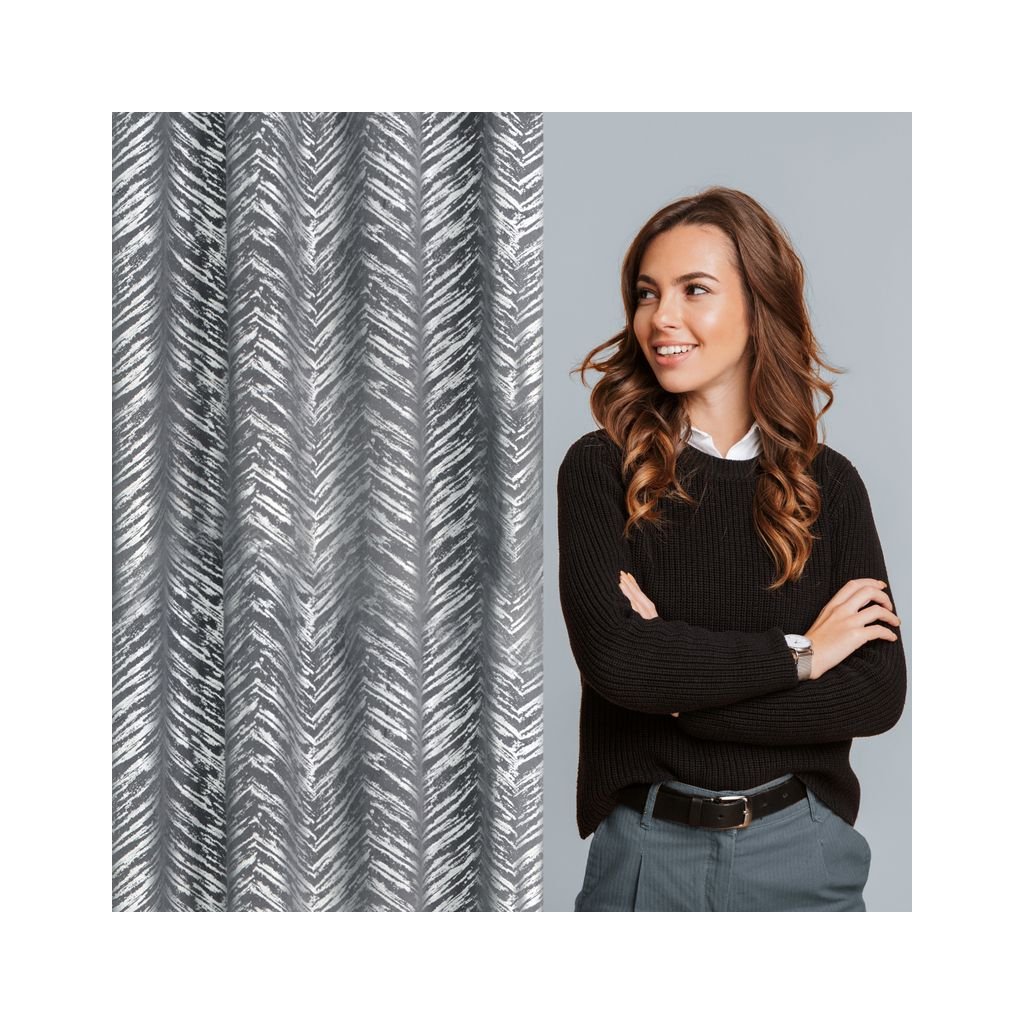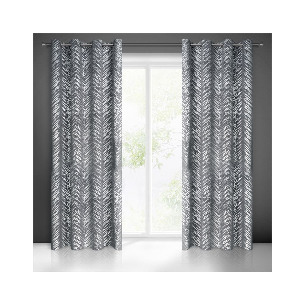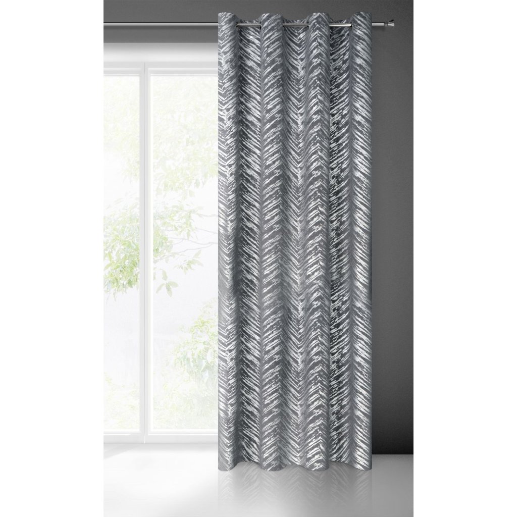 Sametový závěs se stříbrným potiskem šířka: 140 cm, délka: 250 cm, barva: ocelová, hmotnost: 200 GSM, složení: 100 % polyesterDoplňkové parametry