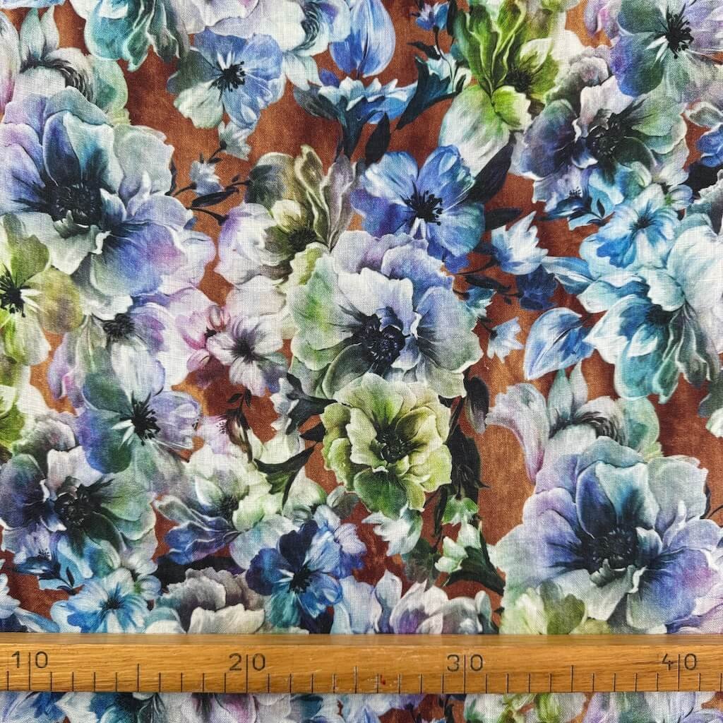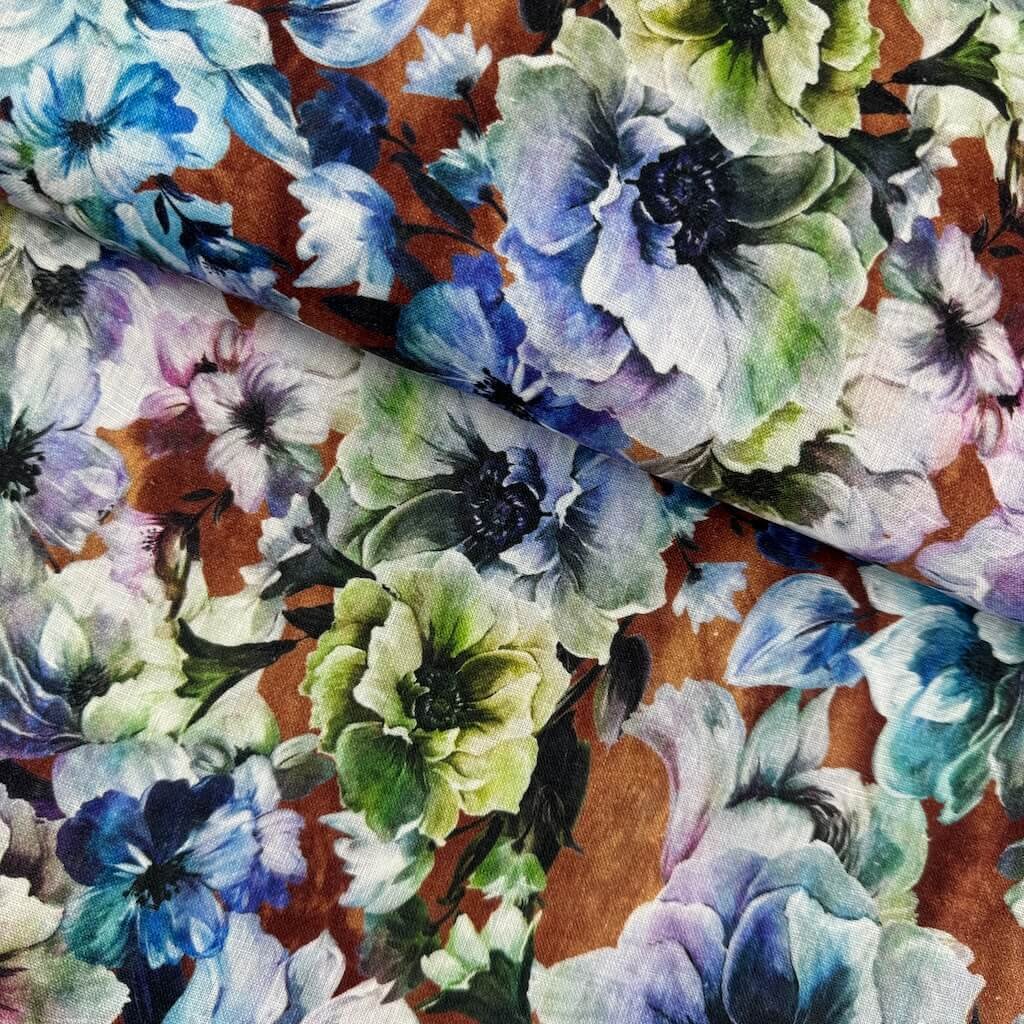 Len digital - Květy na hnědé