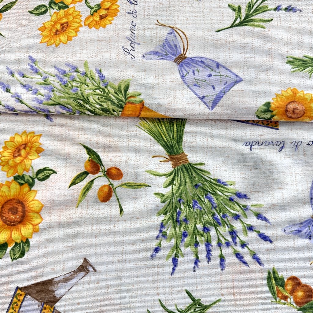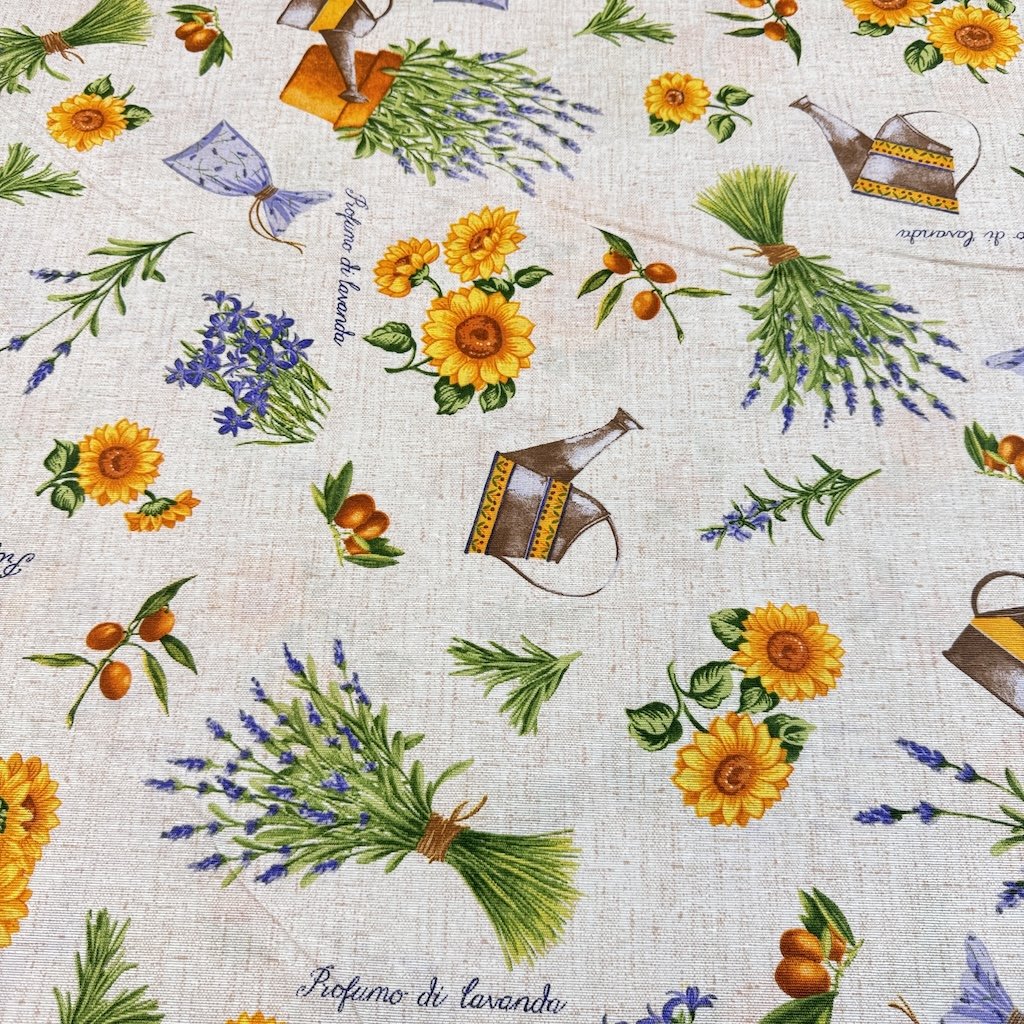 Kvalitní dekorační španělská tkanina s materiálovým složením 70 % bavlny a 30 % polyesteru a gramáží 180 g/m2. Španělská tkanina obsahuje voděodolnou vrstvu.