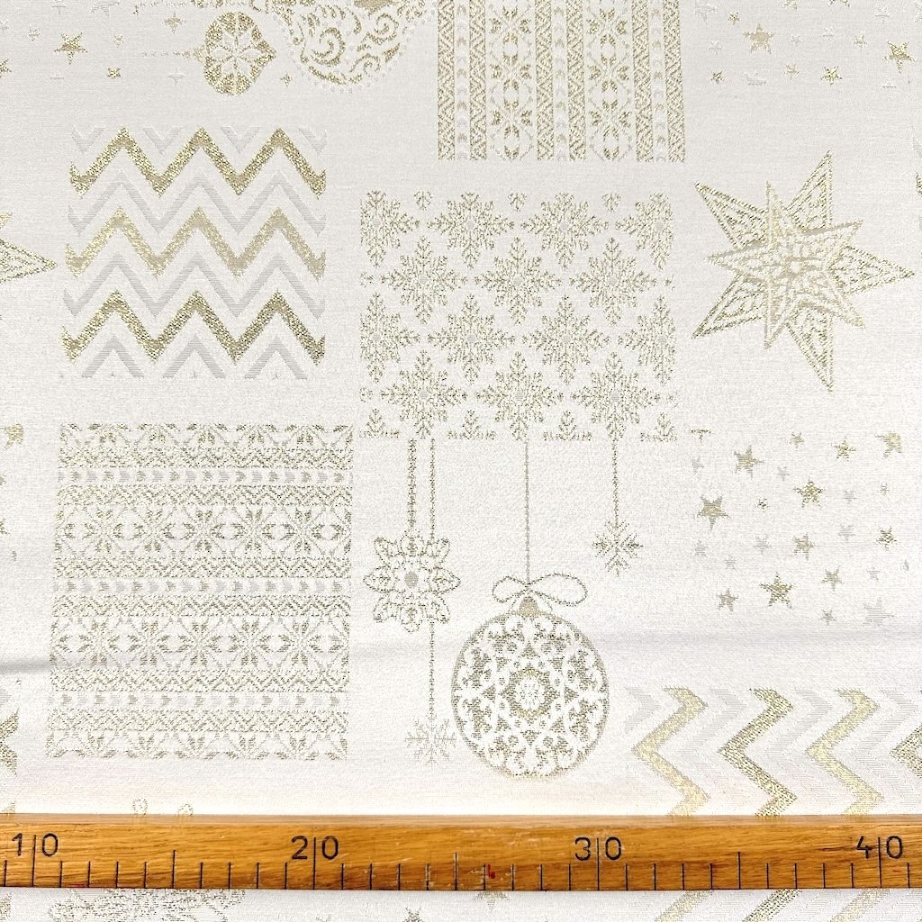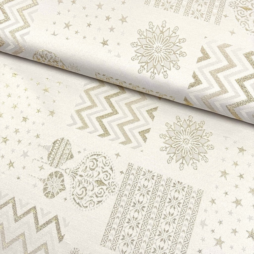 Lurex Vánoce - Patchwork zlatý na vanilkové