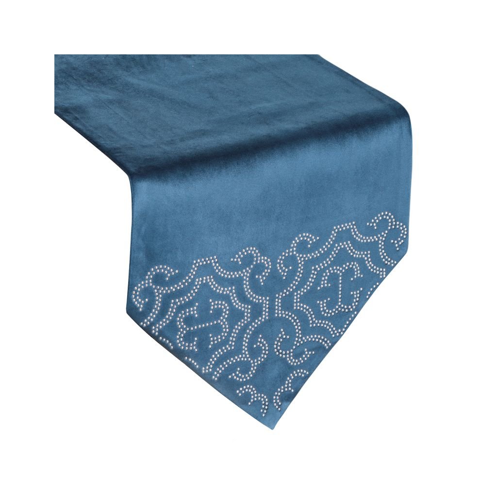 Sametový ubrus zdobený kamínky šířka: 32 cm, délka: 140 cm, barva: tmavě modrá, složení: 100% polyesterDoplňkové parametry