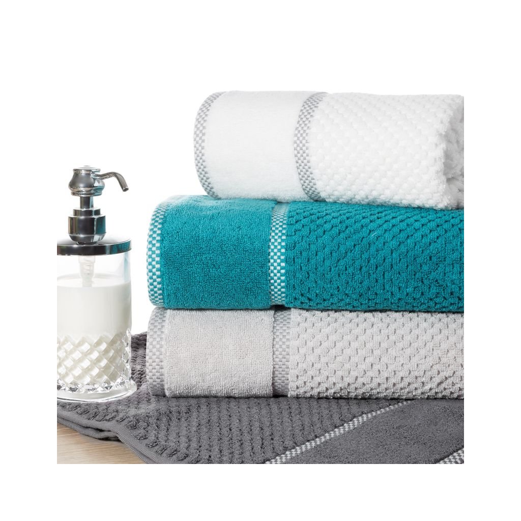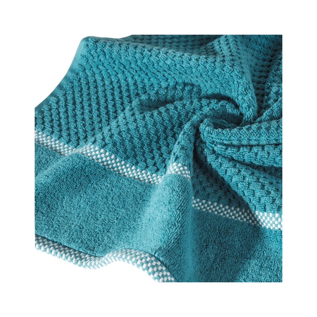 Vysoce savý ručník z měkkého bavlněného froté s jemnou károvanou ražbou a okraji se stejným, výraznějším vzorem. Šířka: 70 cm, délka: 140 cm, barva: tyrkysová, hmotnost: 540 GSM, složení: 100% bavlna; 69 % bavlna 31 % polyesterDoplňkové parametry
