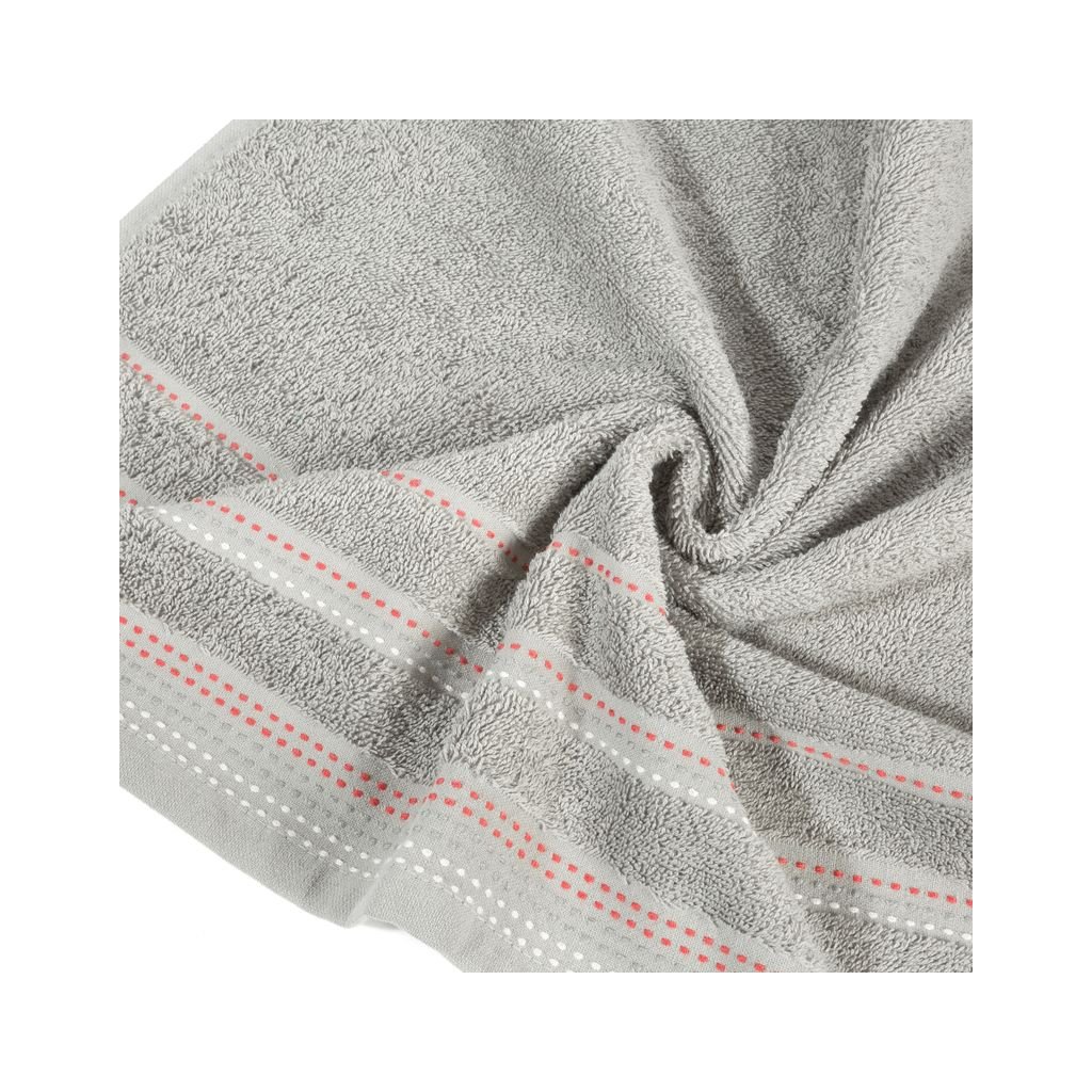 Jednobarevný ručník z měkké a savé froté bavlny zdobený barevným lemem ve stylu fastidious. Snadno se pere, nezanechává skvrny. šířka: 70 cm, délka: 140 cm, barva: stříbrná, hmotnost: 500 GSM, složení: 100% bavlnaDoplňkové parametry