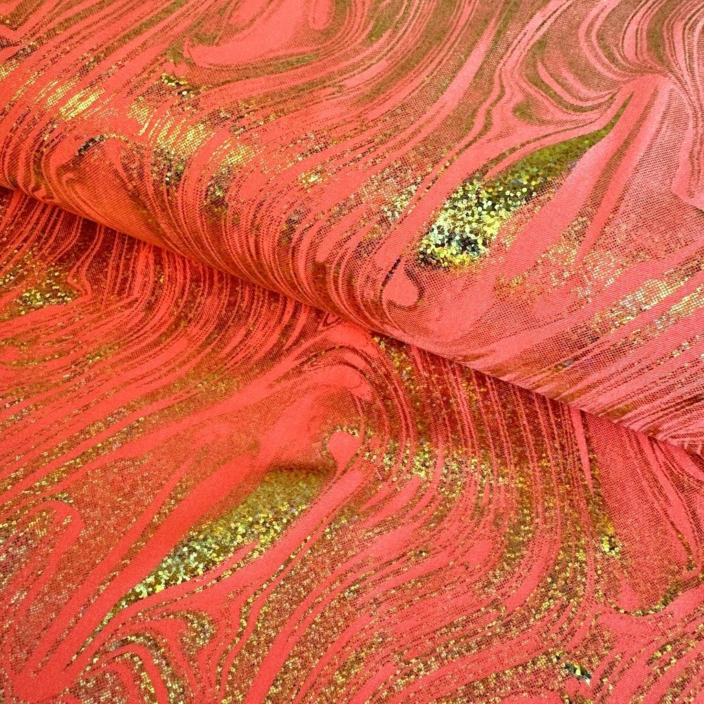 Kvalitní elastický úplet s jednotným základem, na jehož povrchu se střídají efekty stříbrných třpytek, které dodávají výrazný lesk. Látka od evropského výrobce, se složením 80% polyamid a 20% elastan, s gramáží 204 g/m2. Plavkovina je vhodná pro taneční kostýmy, plavky, bikiny, legíny, trikoty, body a šaty.