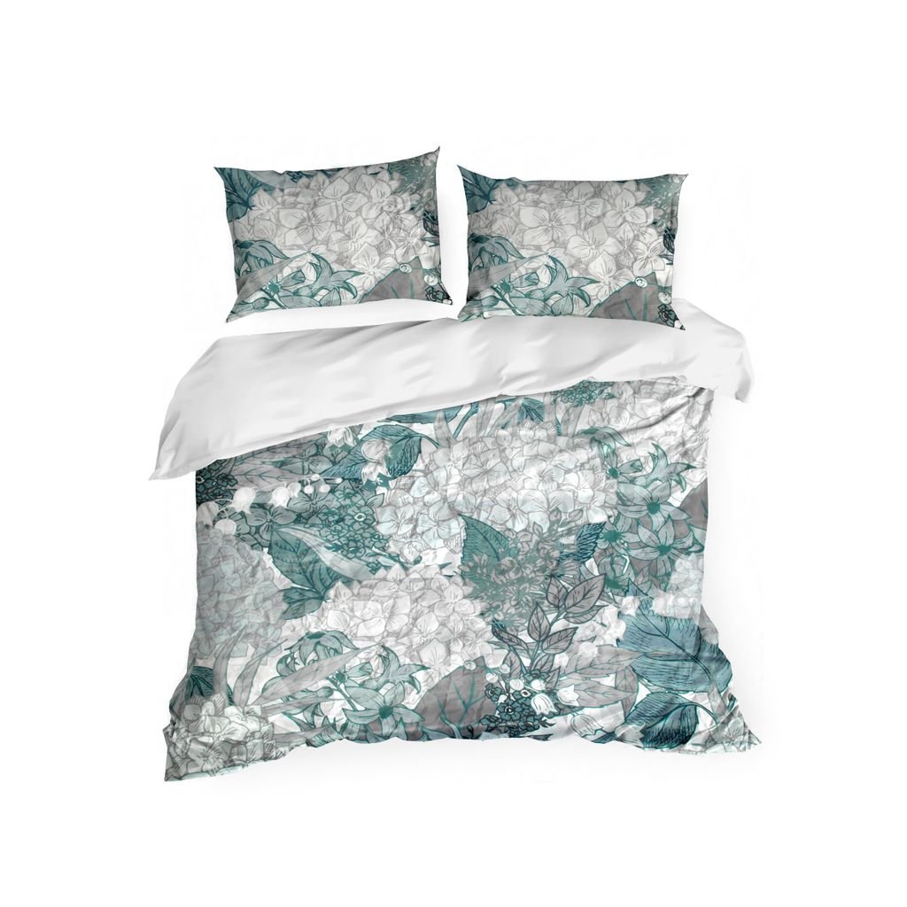 Sada saténových krepových prostěradel s potiskem, šířka: 160 cm, délka: 200 , 2 ks 70 cm, barva: ocelová, gramáž: zadní strana 120 GSM/ přední strana 90 GSM, složení: 50 % bavlna 50 % polyesterDoplňkové parametry