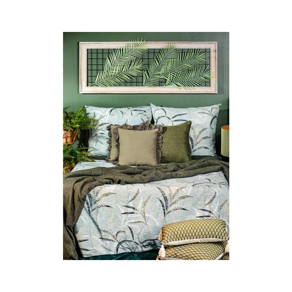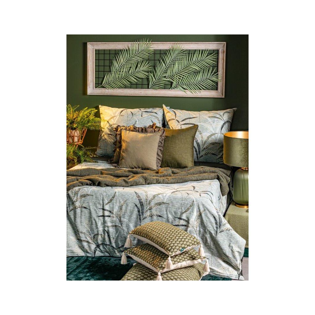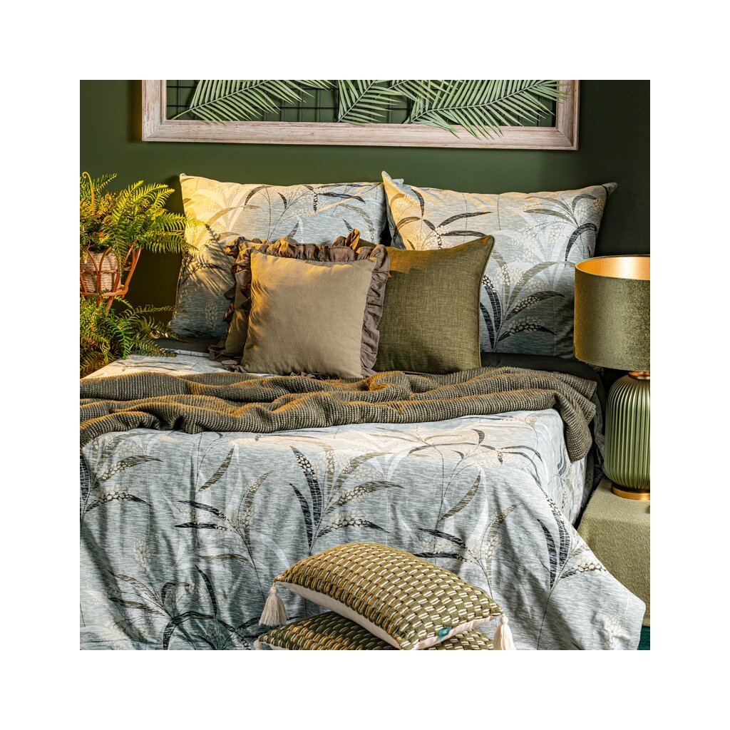 Recyklované bavlněné prostěradlo s rostlinným potiskem Šířka: 220 cm, délka: 200 , 2 ks 70 cm, barva: olivová, hmotnost: 115 GSM, složení: 100 % bavlnaDoplňkové parametry