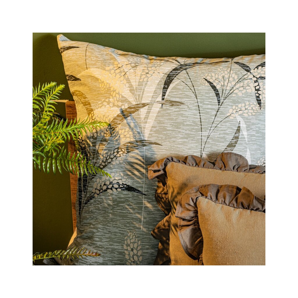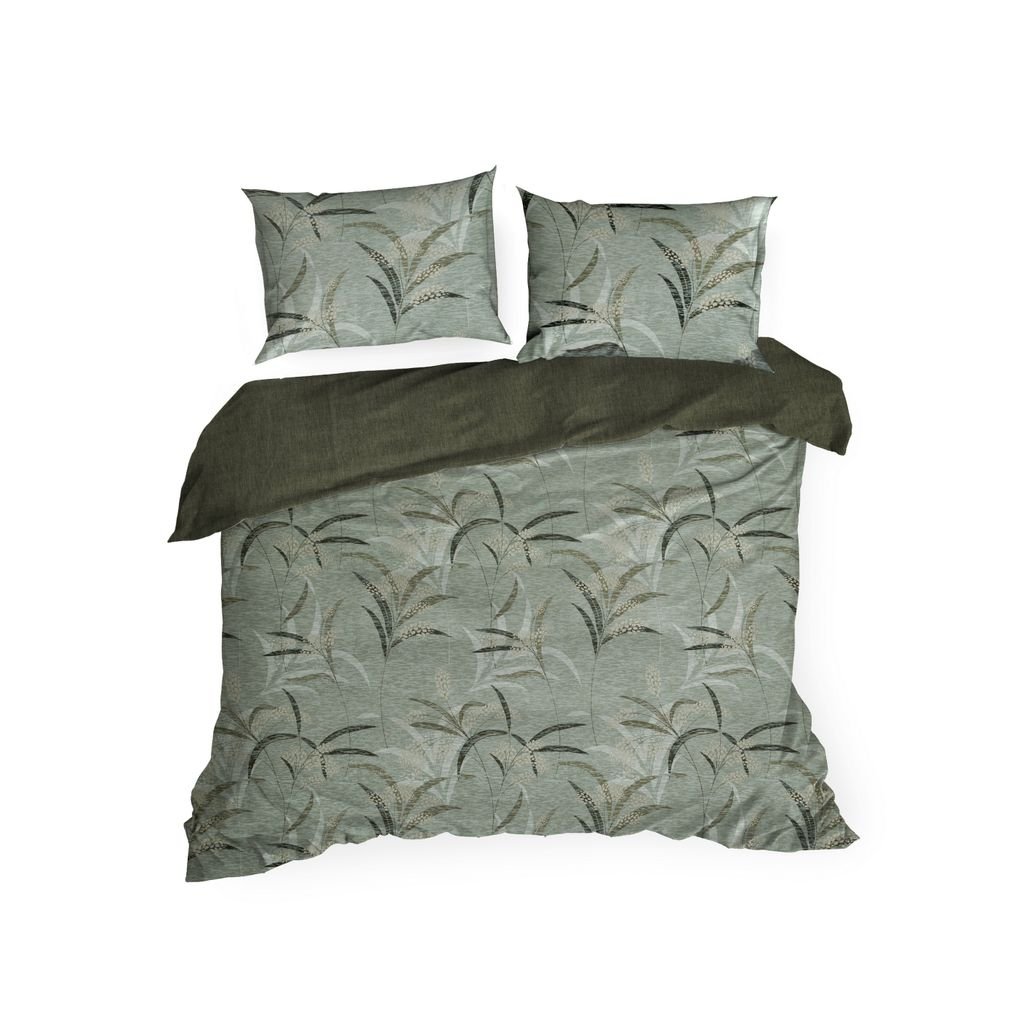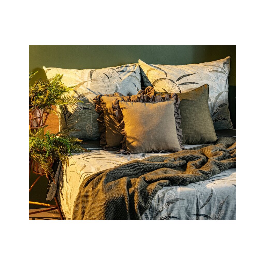 Recyklované bavlněné prostěradlo s rostlinným potiskem Šířka: 220 cm, délka: 200 , 2 ks 70 cm, barva: olivová, hmotnost: 115 GSM, složení: 100 % bavlnaDoplňkové parametry