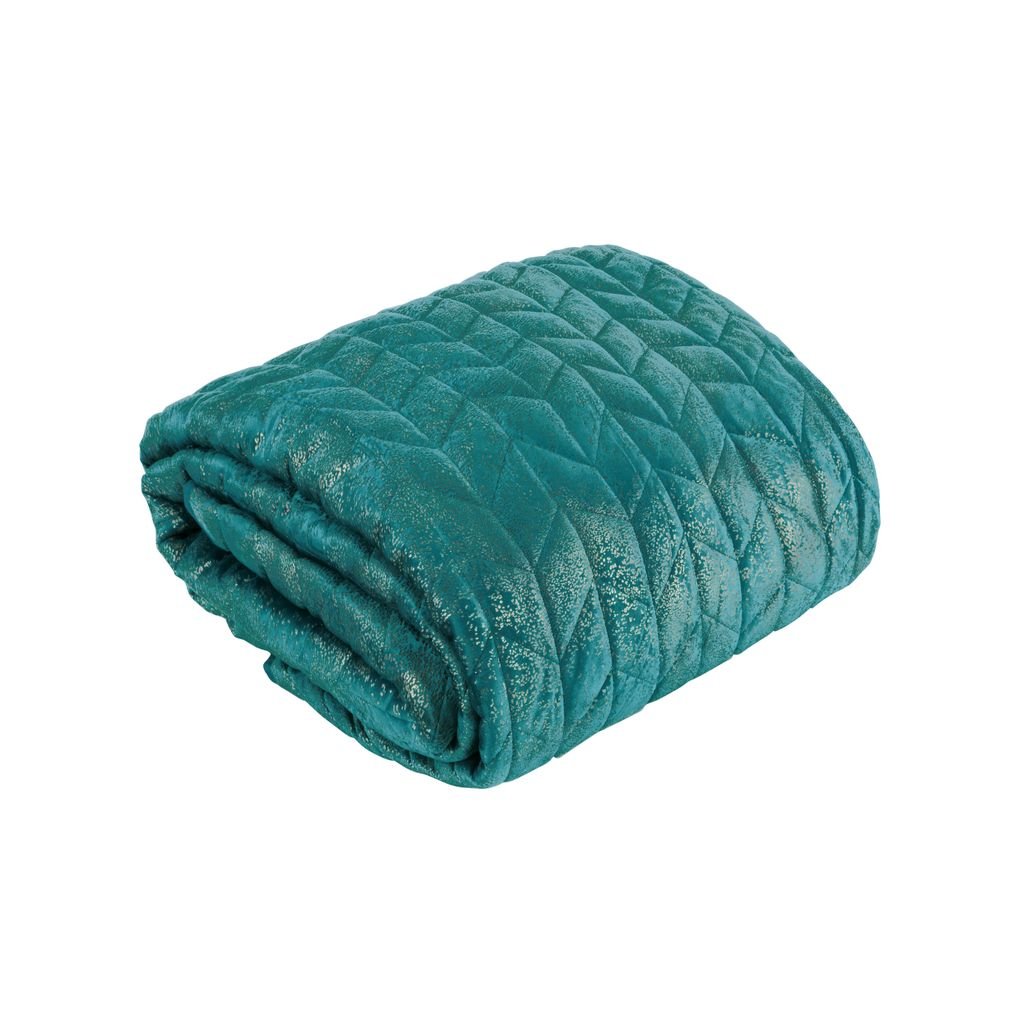Sametový přehoz na postel prošívaný zlatým třením šířka: 170 cm, délka: 210 cm, barva: tyrkysová, hmotnost: 210+75+120 GSM, složení: 100 % polyesterDoplňkové parametry