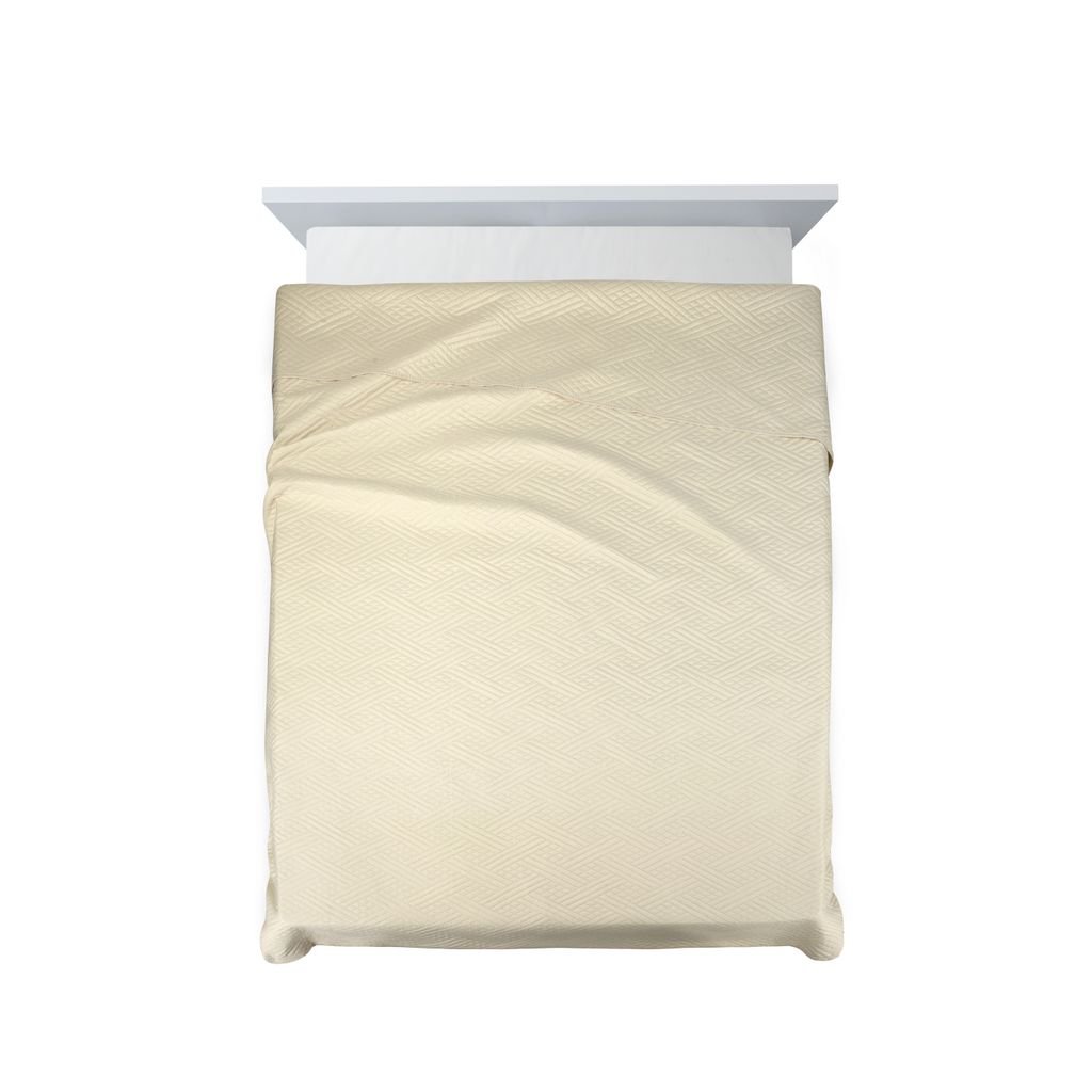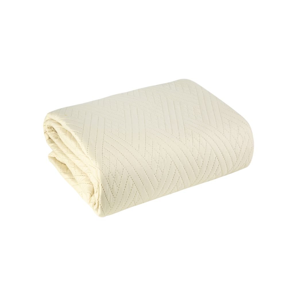 Jednobarevný přehoz, vyrobený technologií lisování za tepla Šířka: 200 cm, Délka: 220 cm, Barva: krémová, Hmotnost: 70+120+70 GSM, Složení: 100 % polyesterDoplňkové parametry