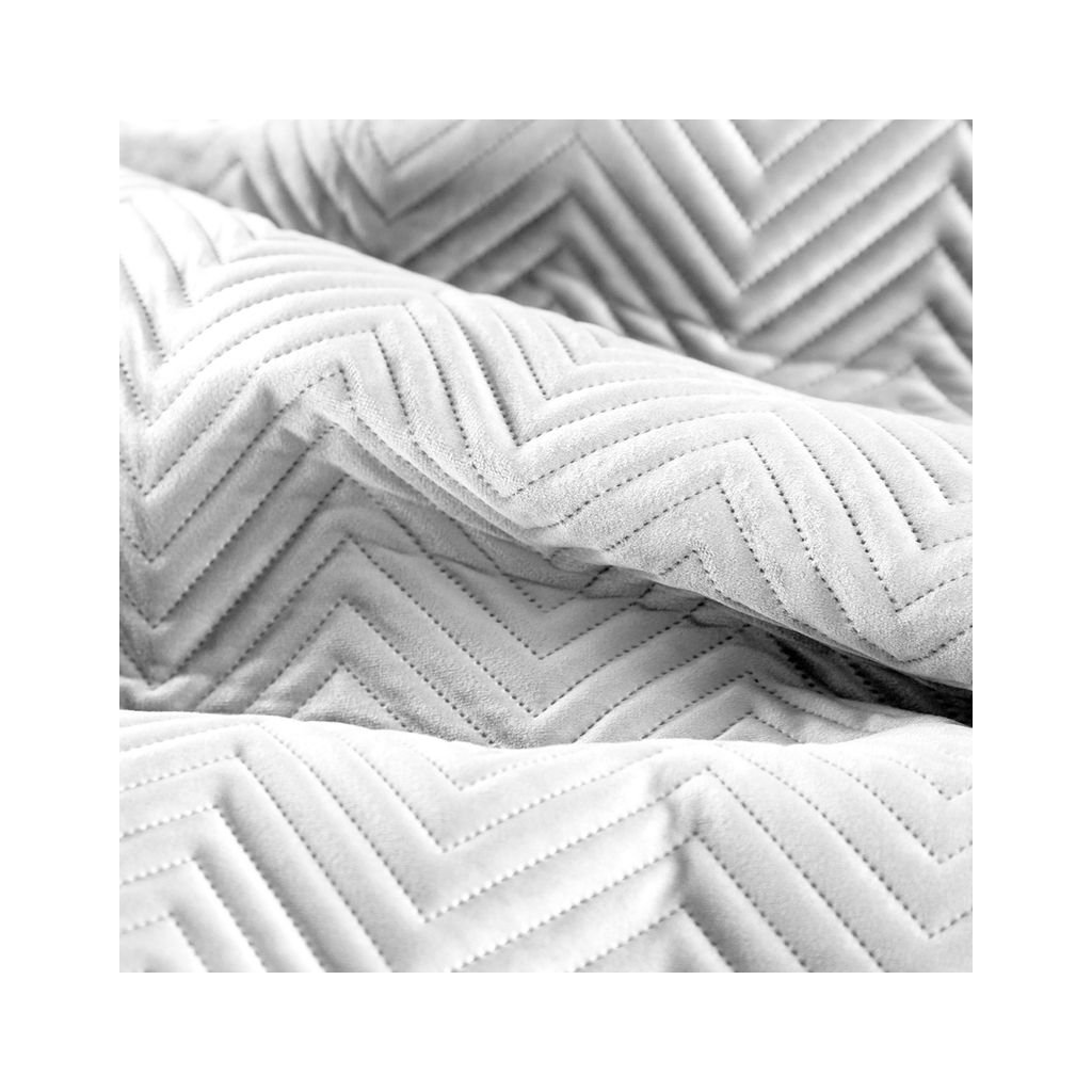 Exkluzivní přehoz na postel z měkkého a na dotek příjemného sametu prošitého velkým hustým vzorem rybí kosti. Pro prošívání byla použita bezešvá metoda horkého stehu. šířka: 170 cm, délka: 210 cm, barva: bílá, gramáž: 250+120+65 GSM, složení: 100% polyesterDoplňkové parametry
