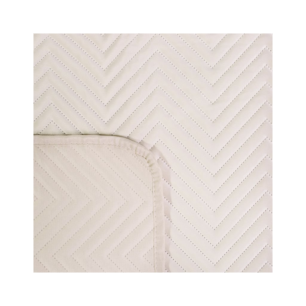 Exkluzivní přehoz na postel z měkkého a na dotek příjemného sametu prošitého velkým hustým vzorem rybí kosti. Pro prošívání byla použita bezešvá metoda horkého stehu. šířka: 200 cm, délka: 220 cm, barva: krémová, gramáž: 250+120+65 GSM, složení: 100% polyesterDoplňkové parametry