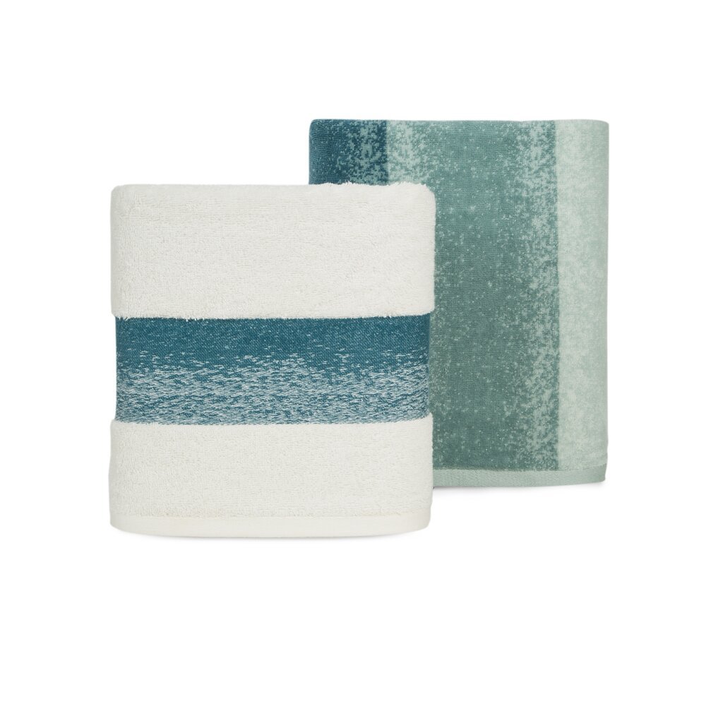 Pruhovaná sada ručníků se stínovaným efektem Šířka: 50 cm, Délka: 90 , 70 cm, Barva: modrá, Hmotnost: 485+500 GSM, Složení: 100% bavlna; 96% bavlna 4% polyester; 100% bavlnaDoplňkové parametry
