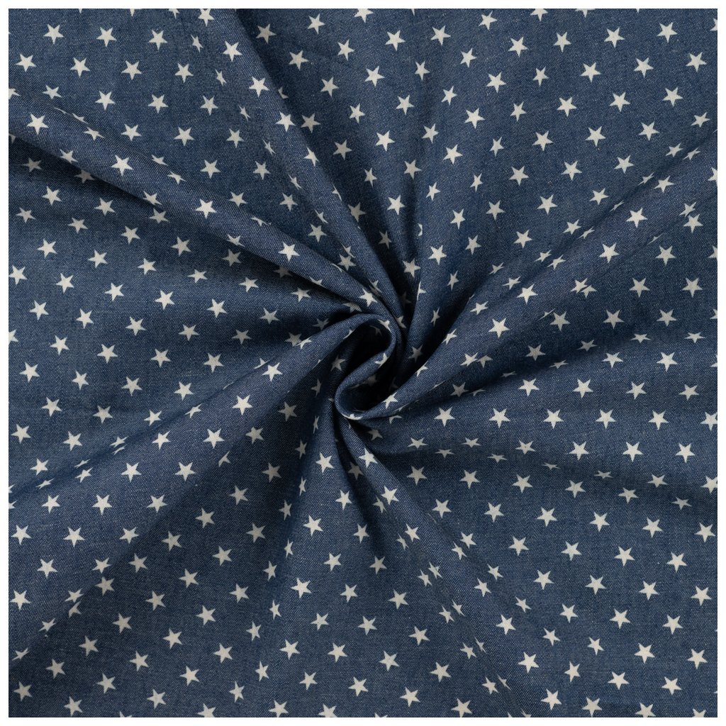 Tato kvalitní šatovka ze 100 % bavlny je ideální volbou na lehké a pohodlné oděvy. Tkanina typu chambray s gramáží 140 g/m² je příjemně měkká na dotek, ale zároveň dostatečně pevná a odolná pro každodenní nošení. Modrý podklad zdobí decentní, a přesto poutavý vzor drobných, rovnoměrně rozmístěných bílých hvězdiček, který dodává látce hravý a svěží vzhled. Díky své lehkosti a prodyšnosti je ideální na šaty, sukně, košile, halenky či dětské oblečení.