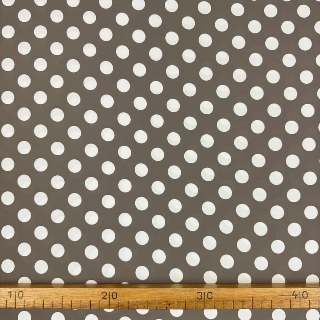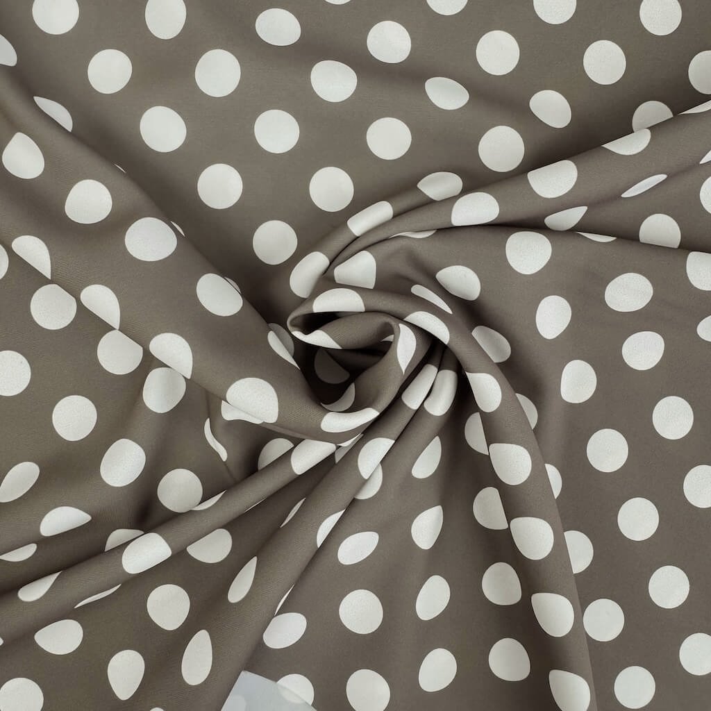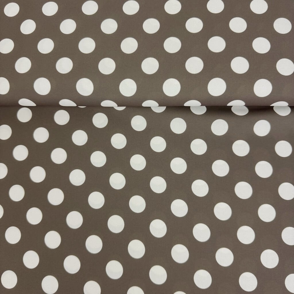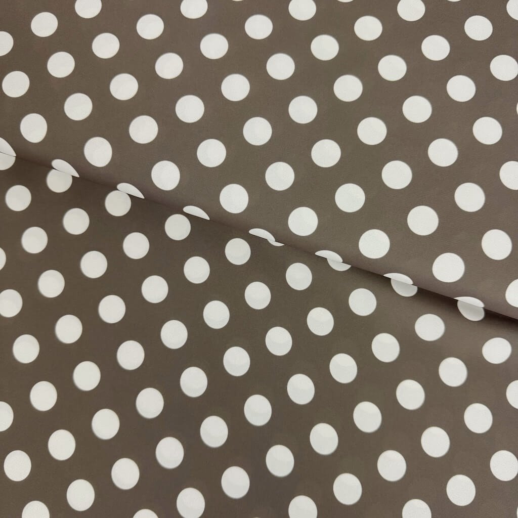 Šatovka Edita - Bílé puntíky (15 mm) na hnědošedé