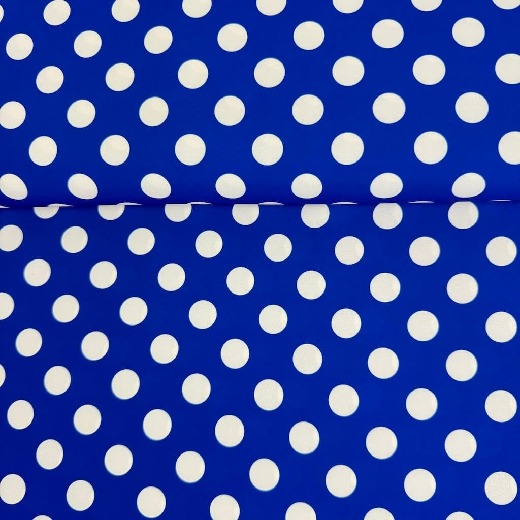 Šatovka Edita - Bílé puntíky (15mm) na modré