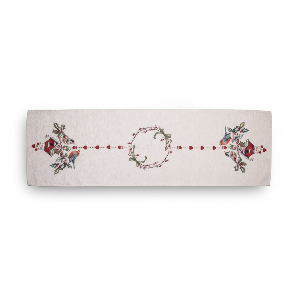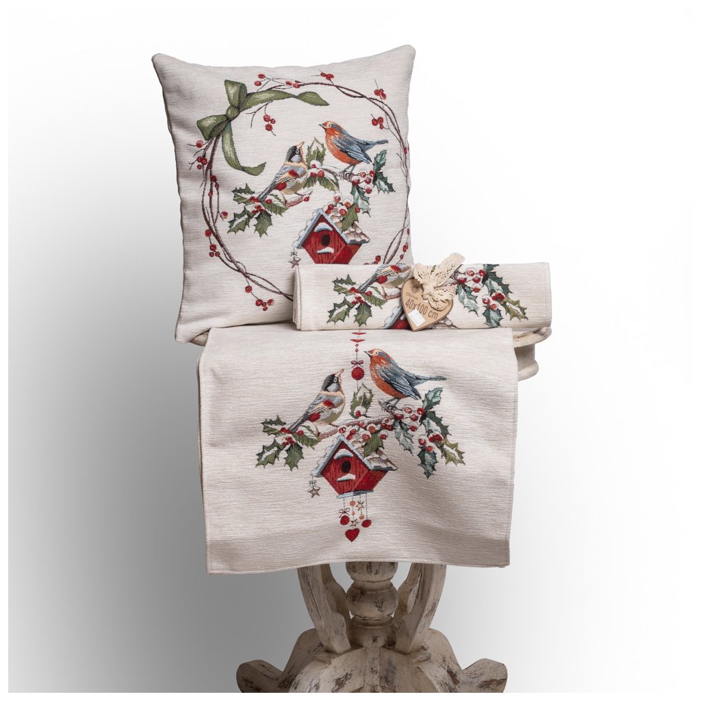 Štóla Gobelín CHENILLE 40/100 cm – Ptáčci – Vánoce 008