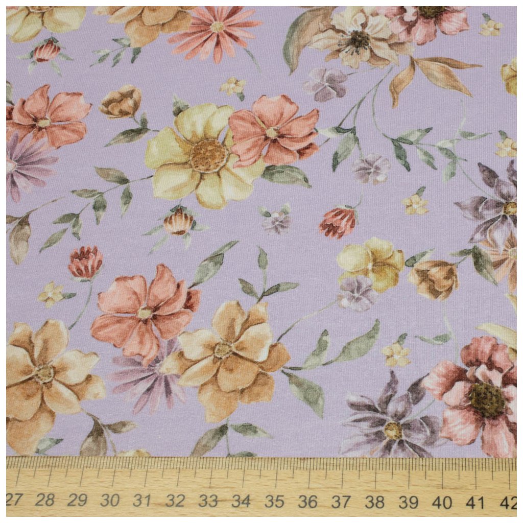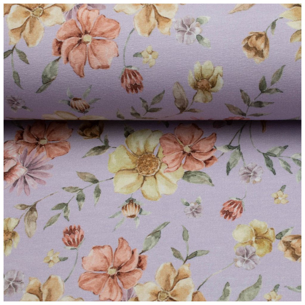 Teplákovina digital - Květy na fialovém